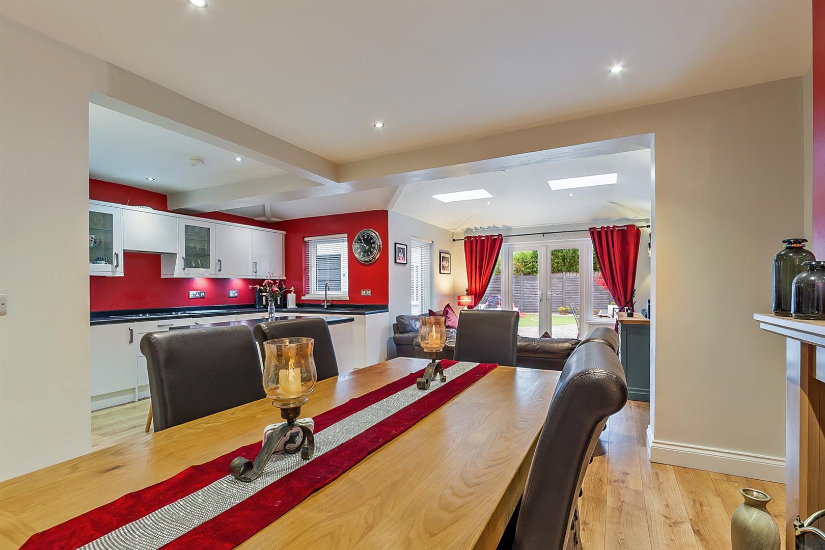 DINING ROOM 12'3" X 11'5" (3.74m X 3.48m) Gas fire in granite fireplace with matching hearth and timber surround. Wood laminate floor covering. Open through to kitchen and sun lounge.
