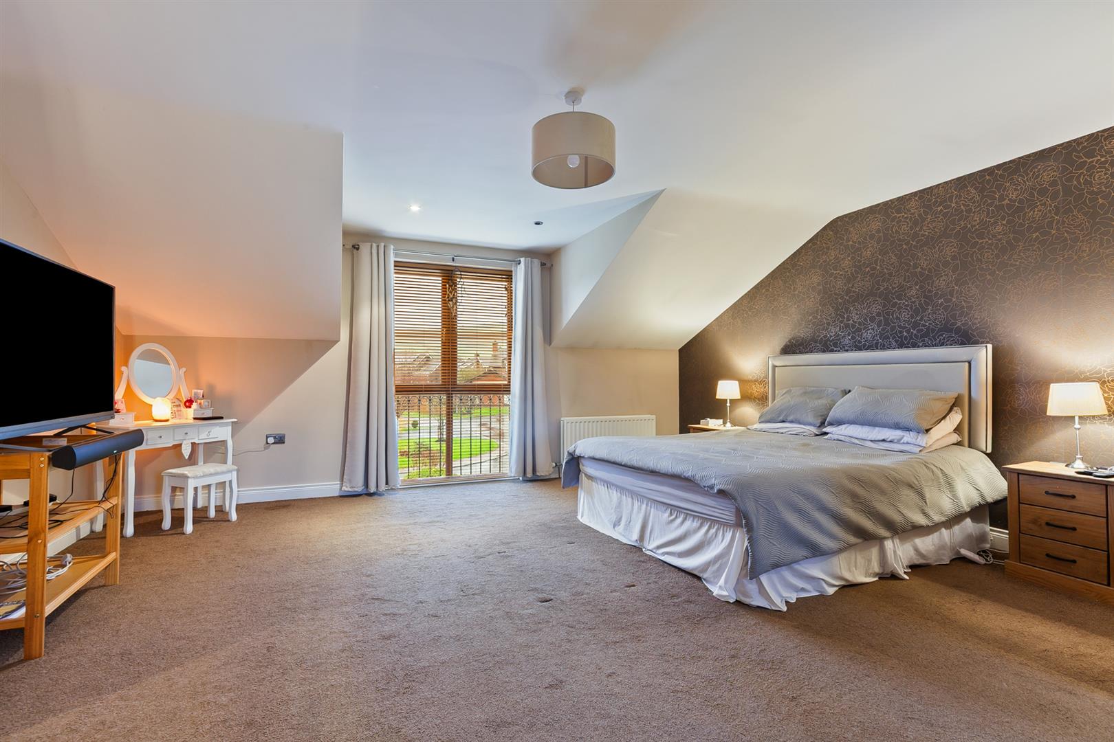 PVC double glazed French doors leading to balcony area. Access to roof space.