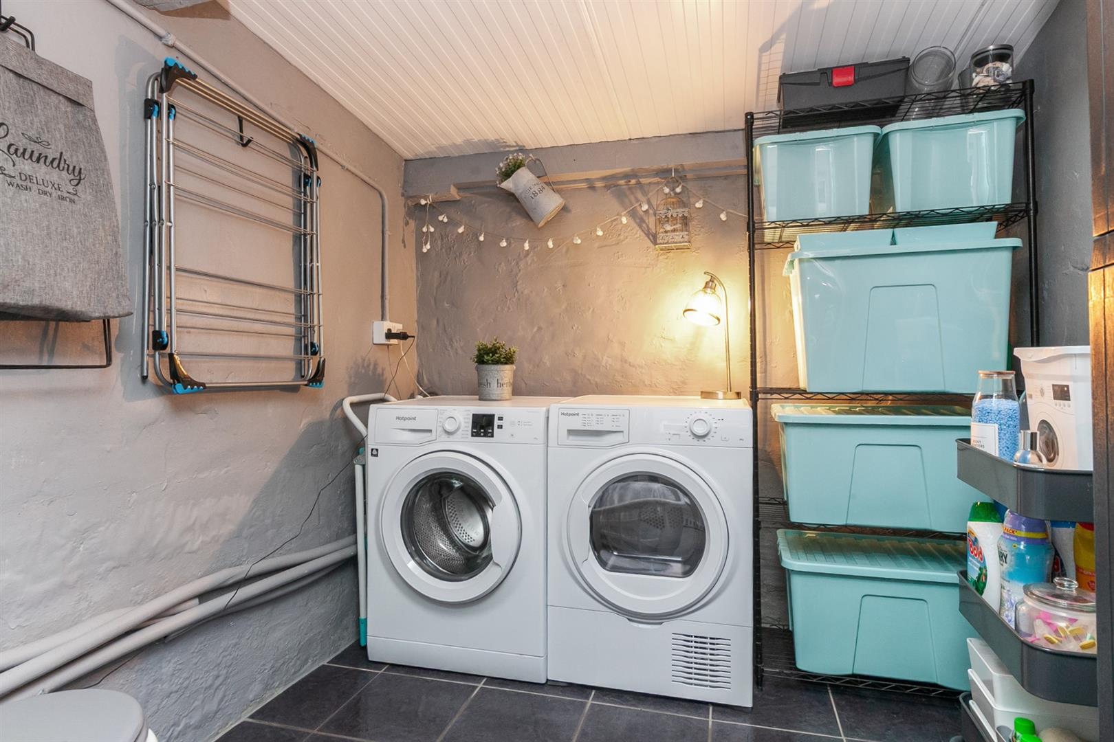 Power. Plumbed for automatic washing machine. Tiled floor.