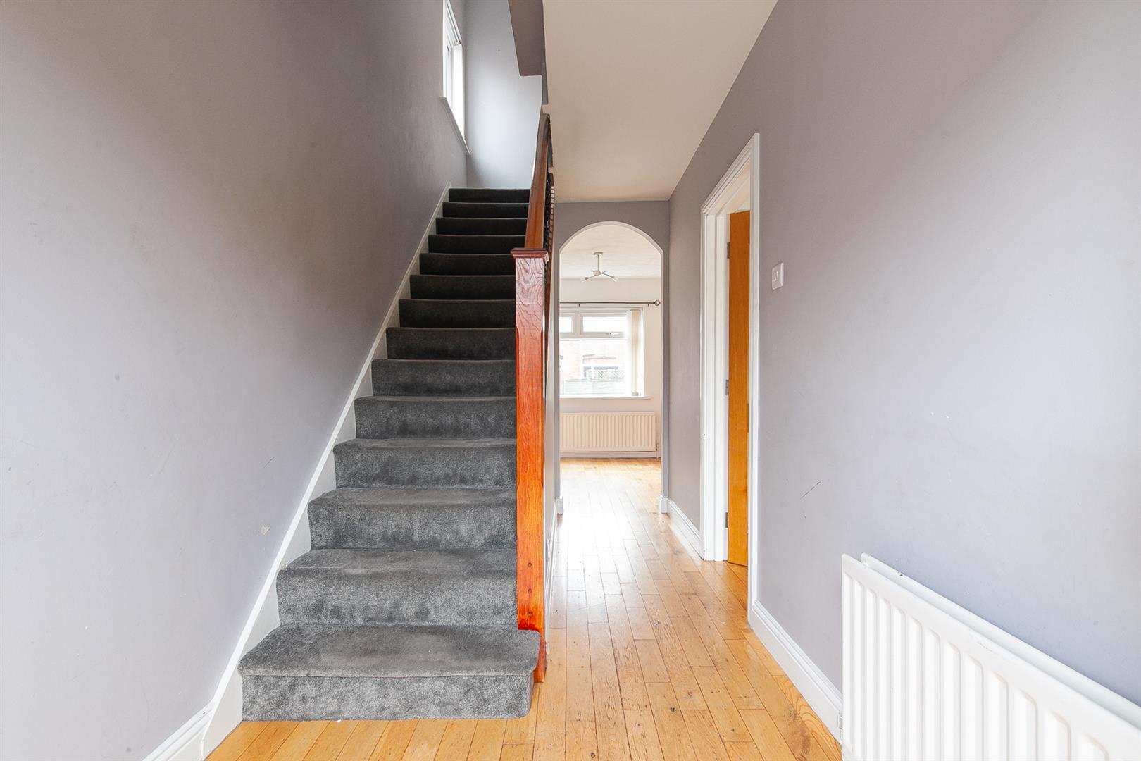 PVC double glazed front door with matching side screens. Timber flooring. Stairwell to first floor. Open arch through to: