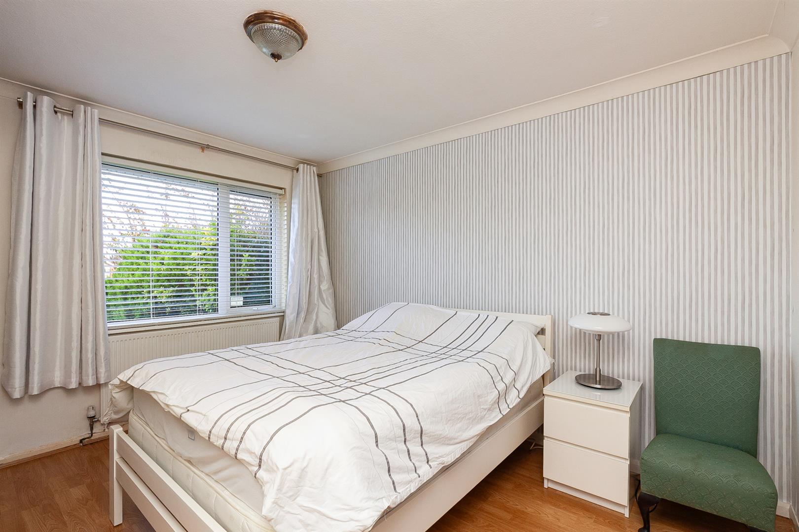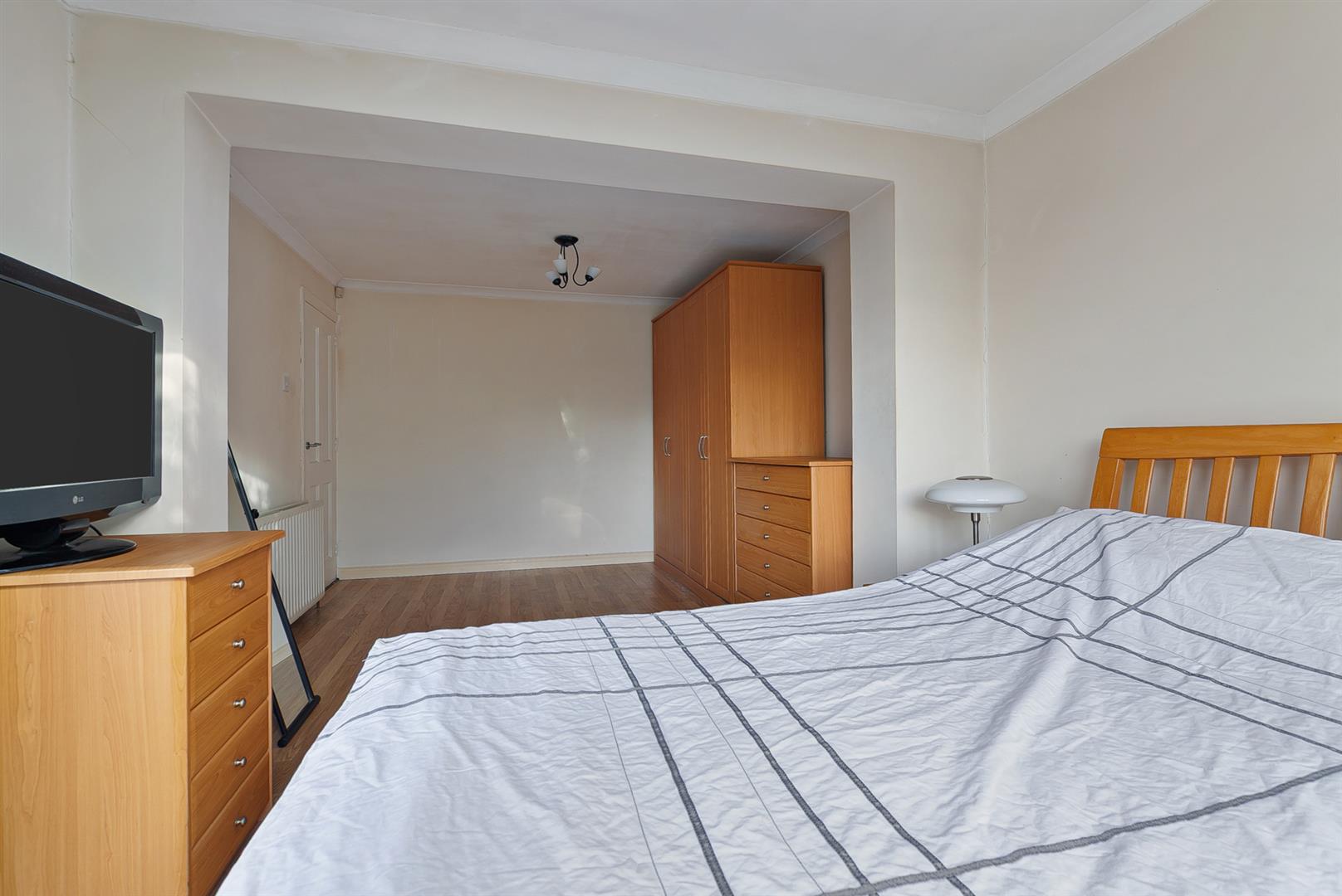 Built in wardrobe/store. Wood laminate floor covering.