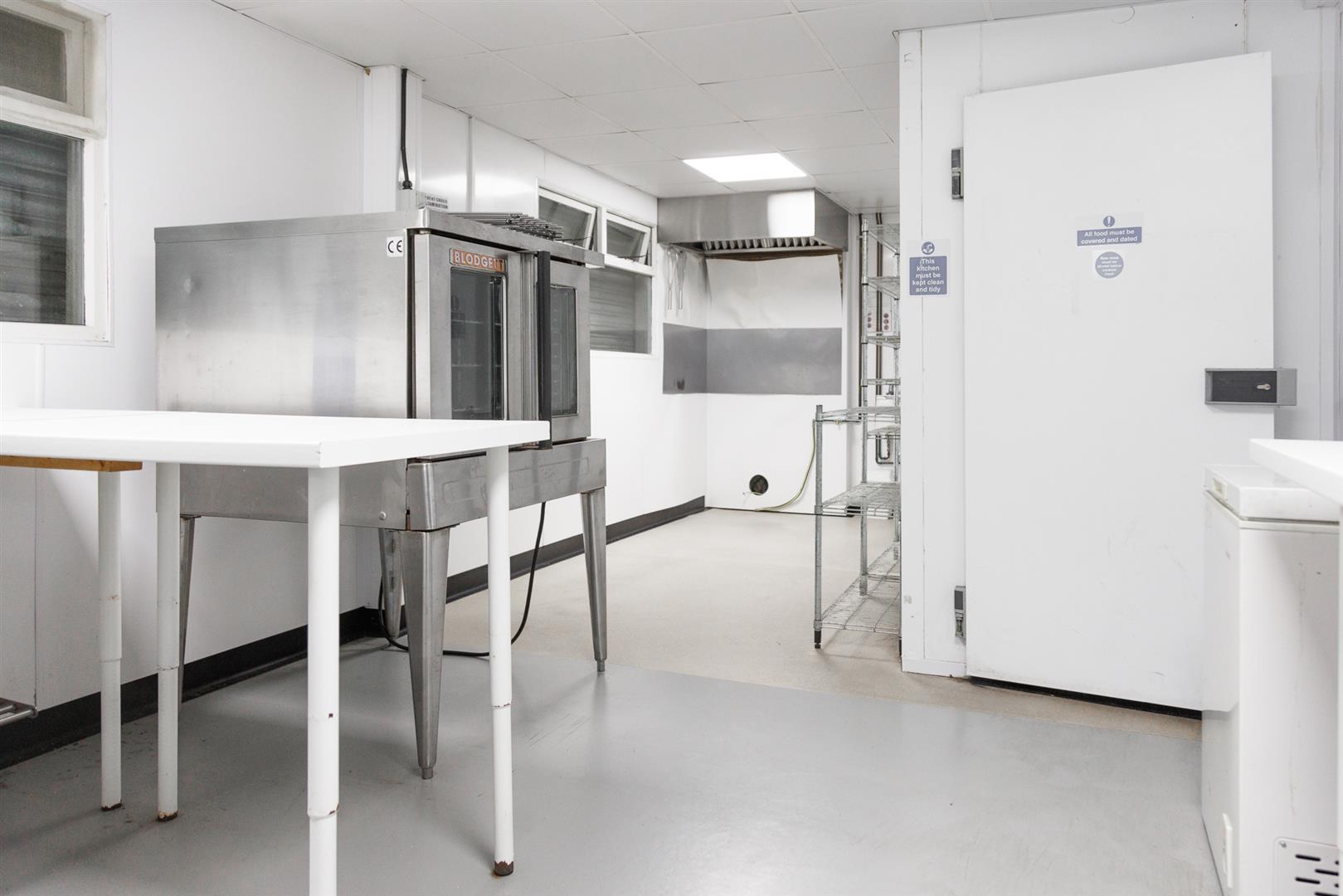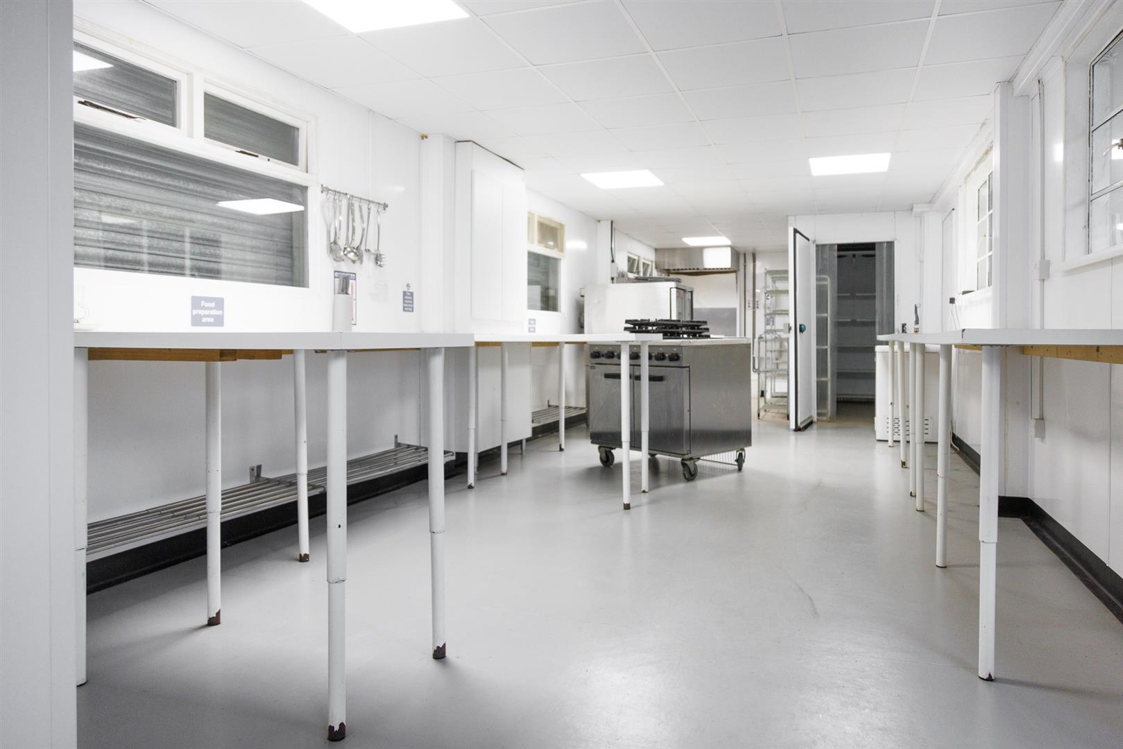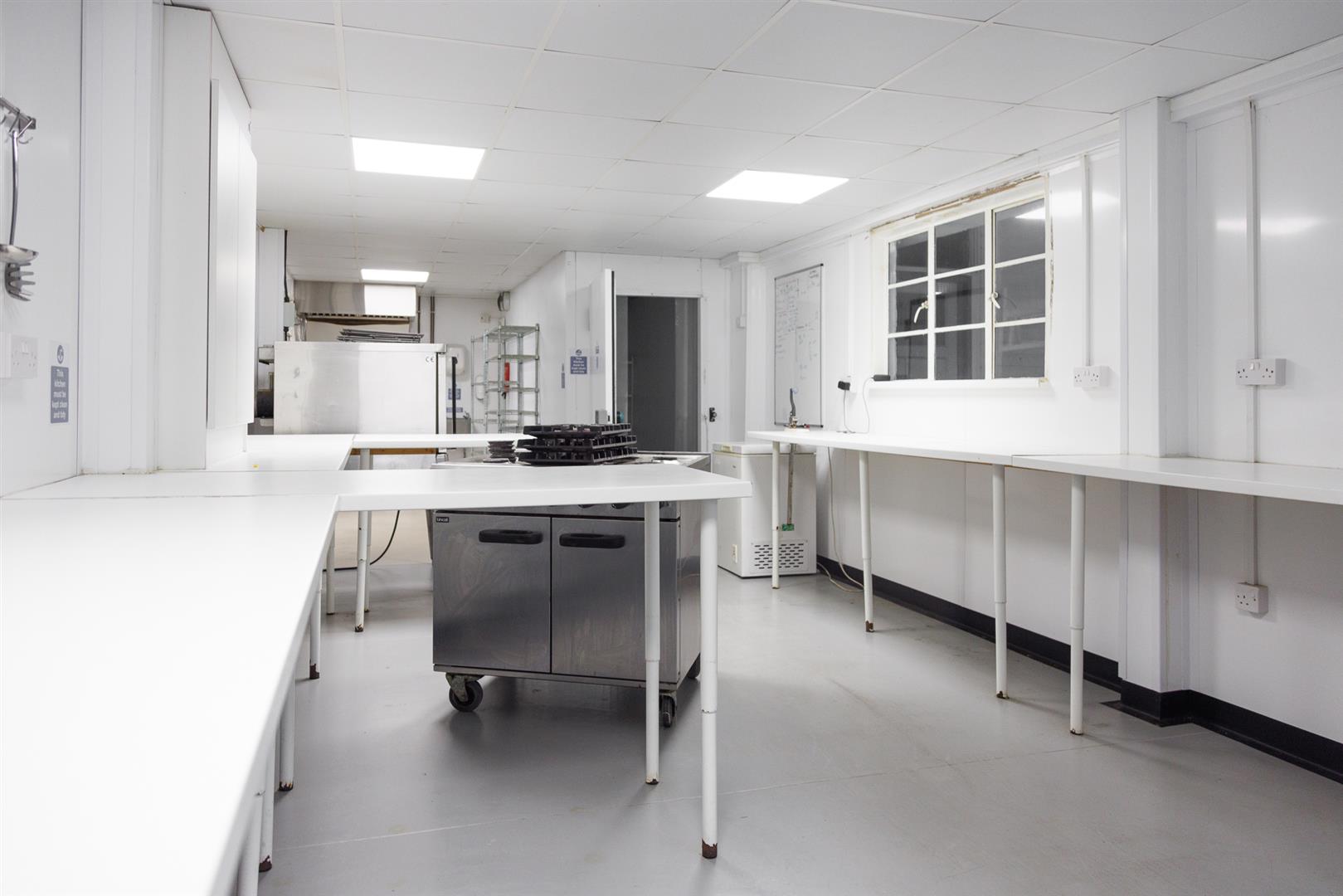 Range of fitted workbenches. Stainless steel, twin sink units with mixer tap. PVC panelling to walls. Two separate stainless steel sink units. Vinyl floor covering, light and power. Suspended tile ceiling with lighting inset. Gas fired central heating boiler (housed in high level unit). Plumbed for gas stove/cooker with extractor canopy over. Built in storage cupboard with light, power and shelving. Option to purchase walk in cold room store via separate negotiation.