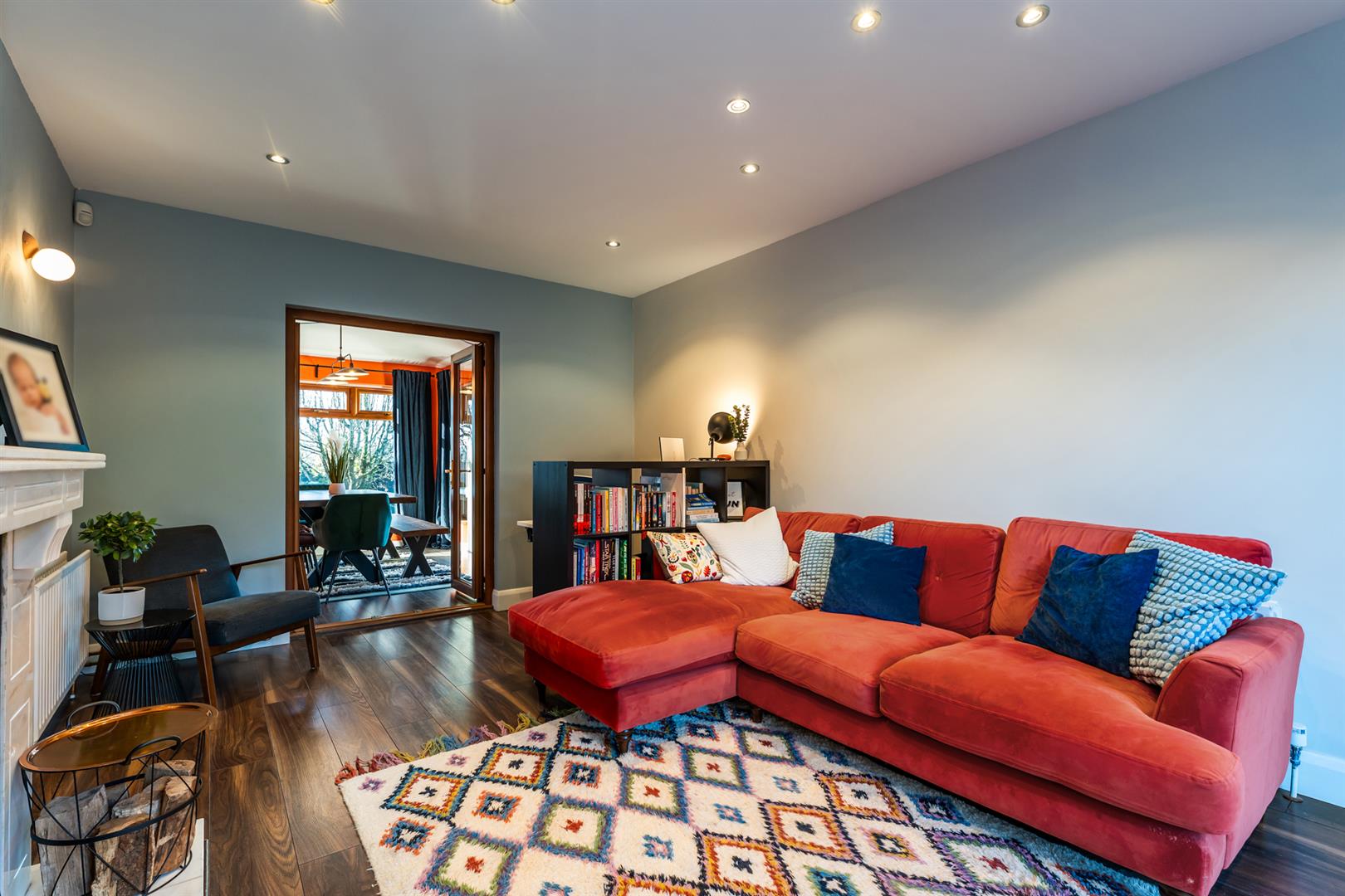 Dual aspect windows. PVC double glazed French doors leading to rear garden. Karndean flooring.