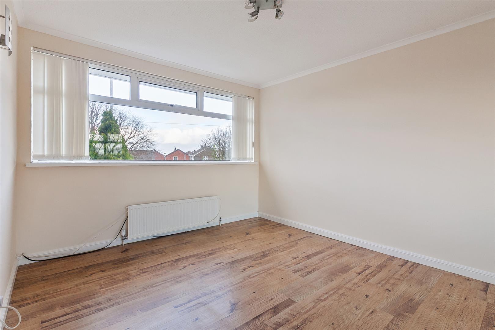 Elevated rural view towards Knockagh and Mossley Mill. Fitted wardrobes in mirror panelled sliding doors. Wood laminate floor covering.