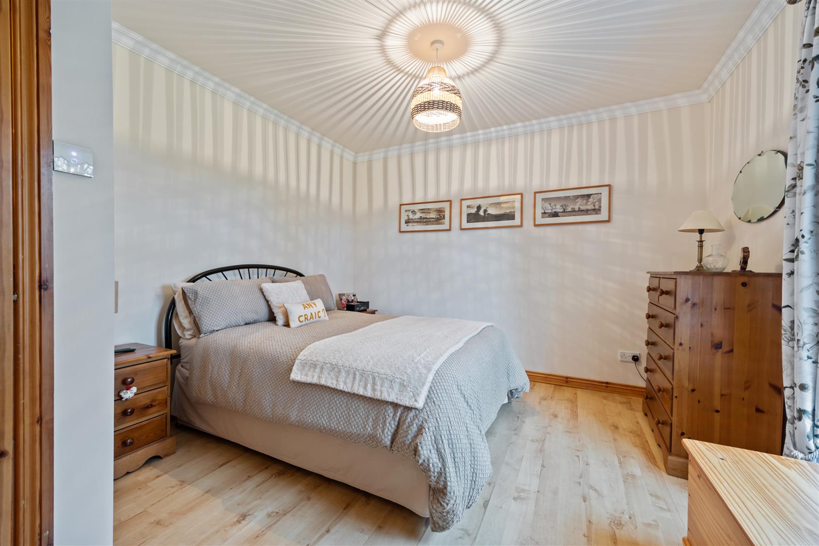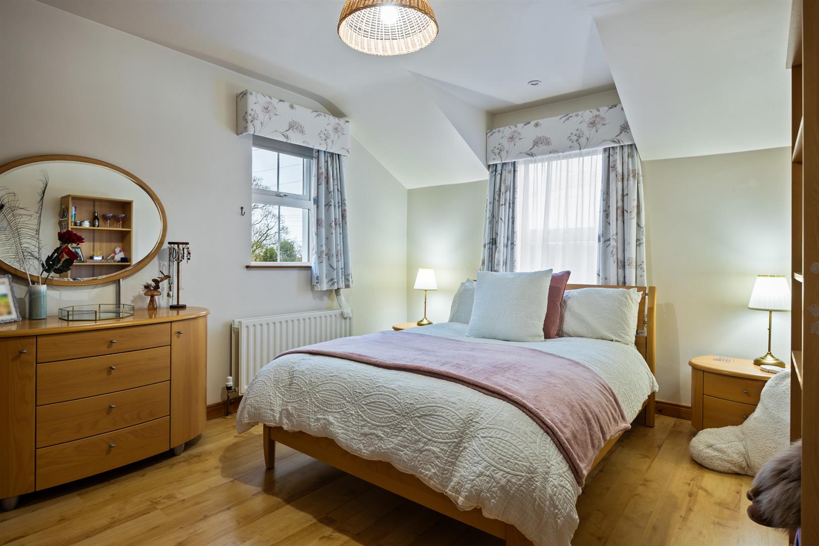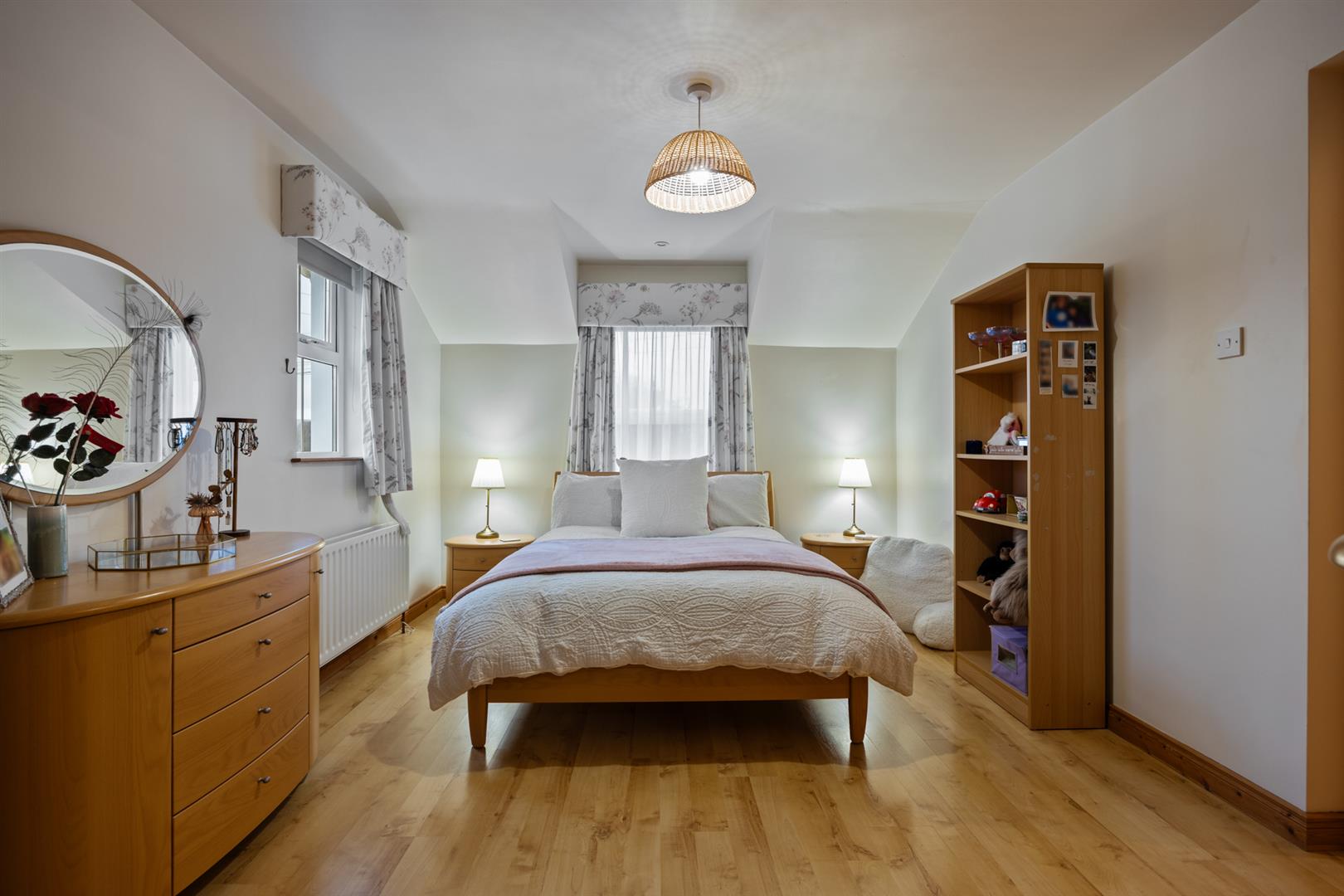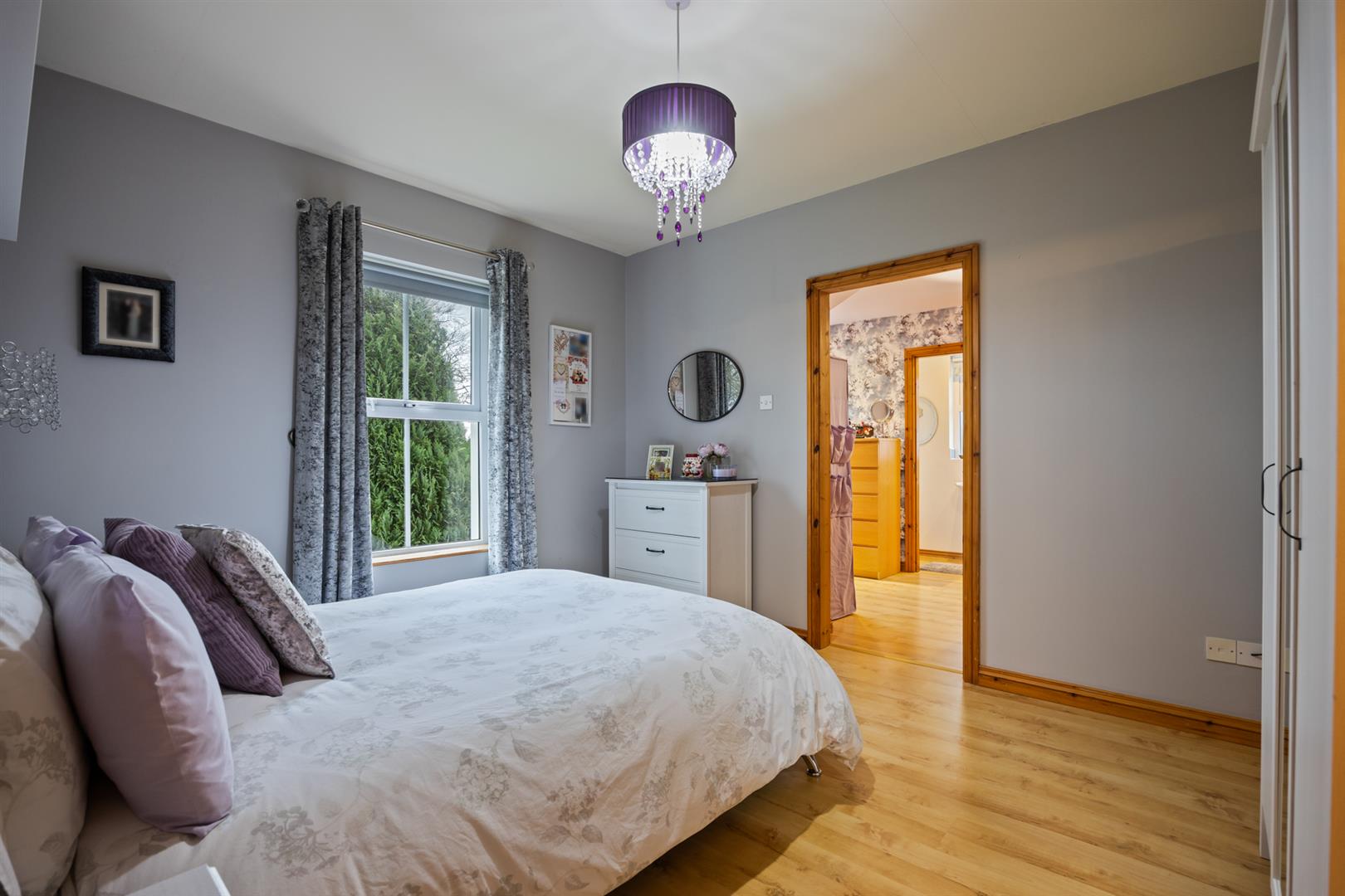 Dual aspect windows. Rural view to front elevation. Wood laminate floor covering.
