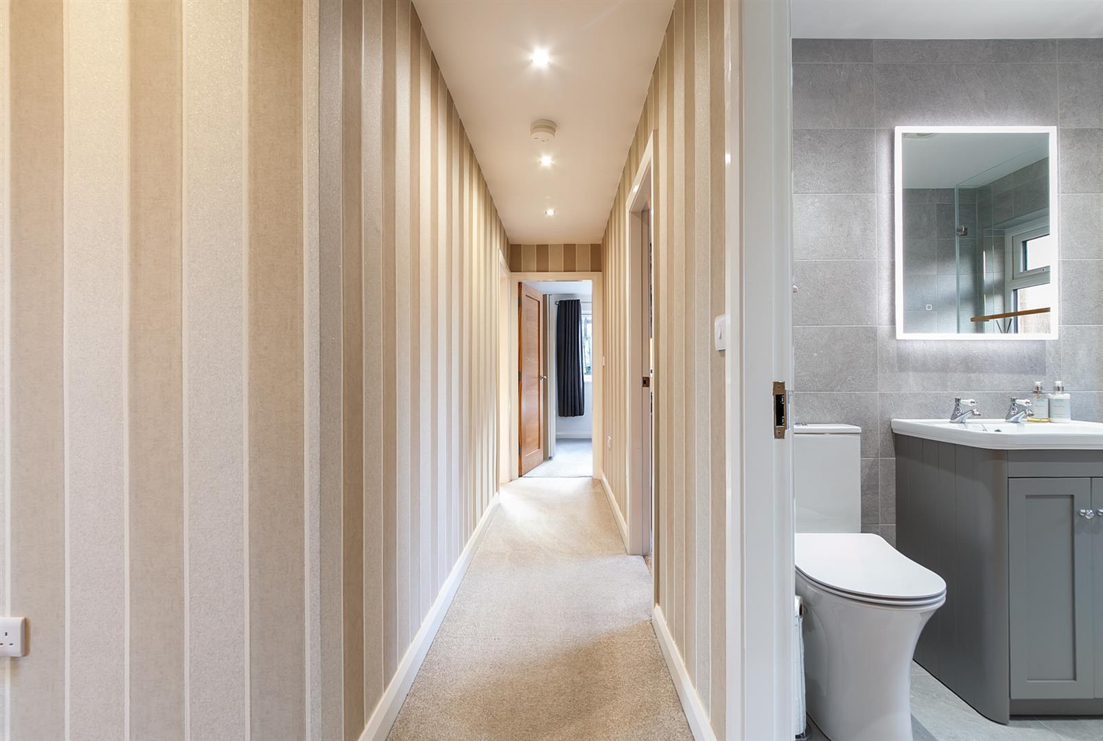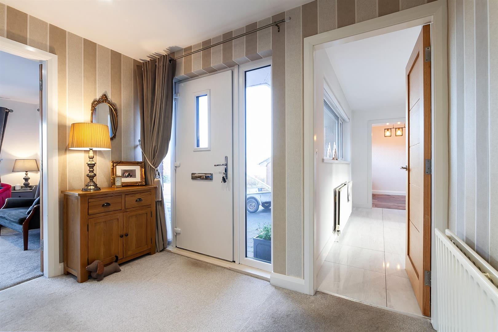 Composite double glazed front door with PVC double glazed side screens. Access to cloakroom. Access to roof space.