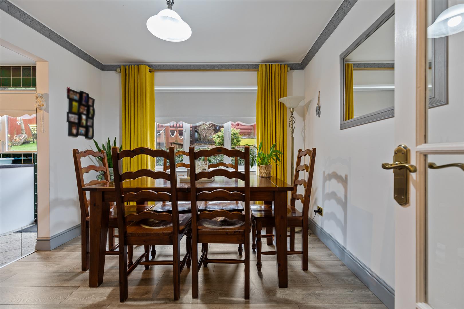 The property comprises entrance hall, lounge, dining room, kitchen with informal dining area, three well-proportioned bedrooms, and fully tiled family bathroom.