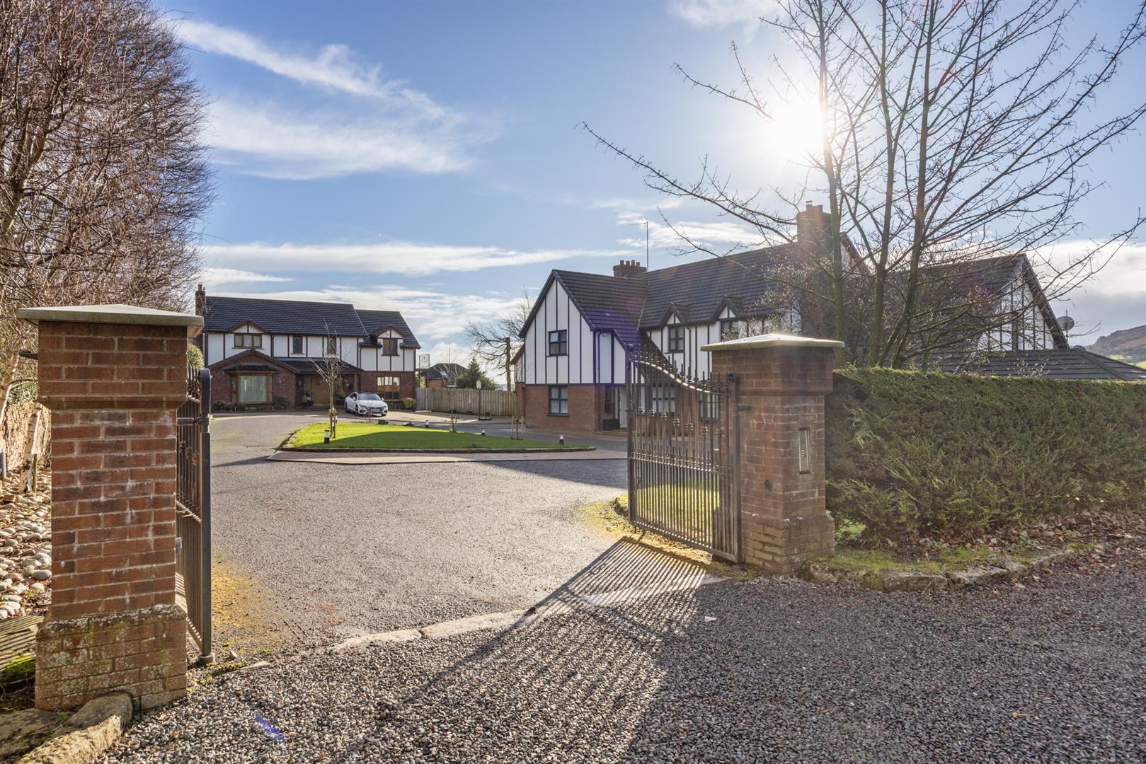 Private driveway area finished in tarmac and brick pavior.