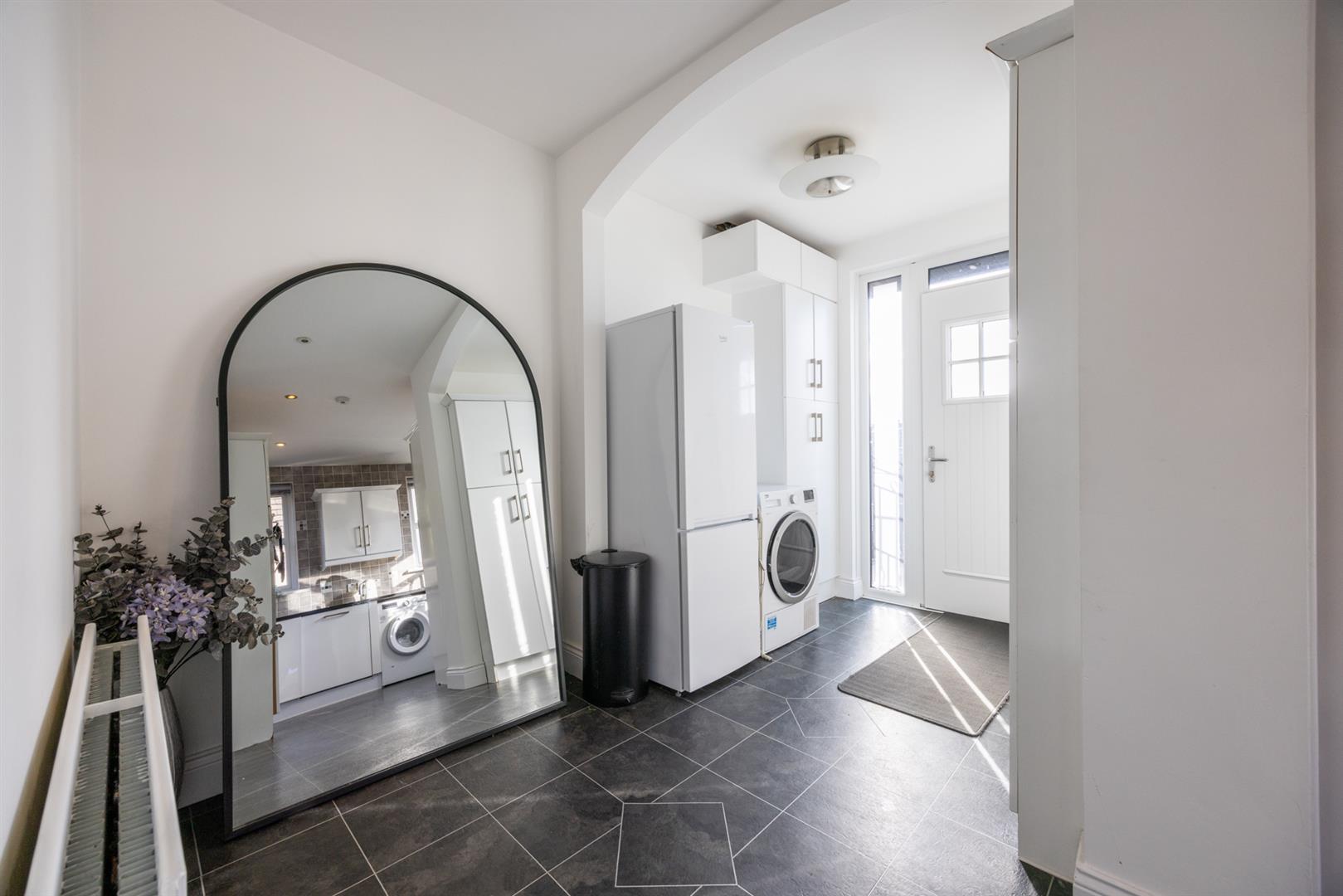 Fitted storage unit. Plumbed for automatic washing machine. Space for tumble dryer. Space for fridge freezer. Gas fired central heating boiler. Amtico flooring, Composite double glazed door to rear garden.