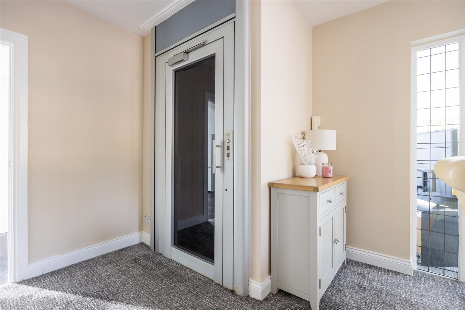 Lift access to first floor. PVC double glazed sliding patio door leading to: