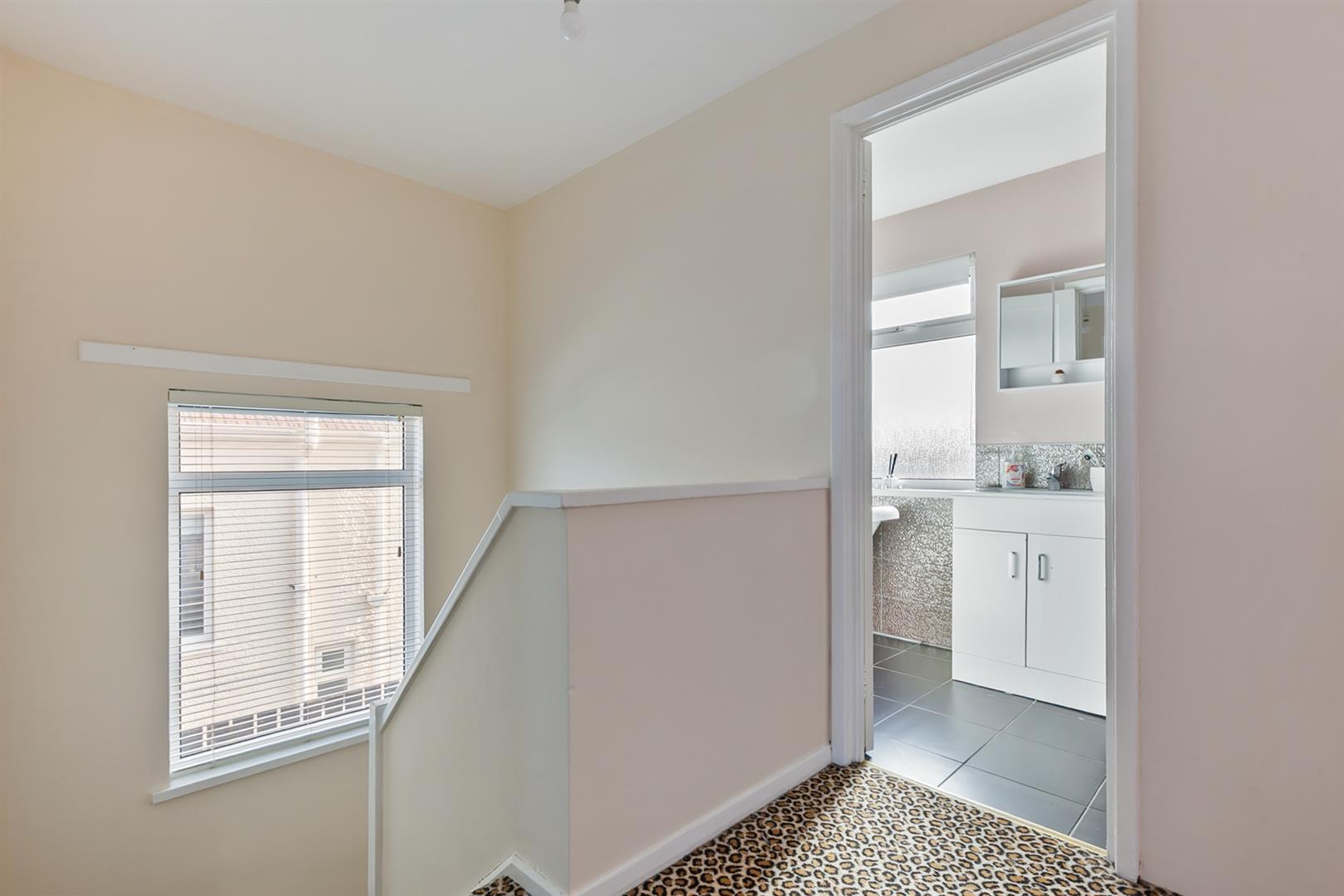 Access to shelved store with gas fired central heating boiler. Access to roof space.