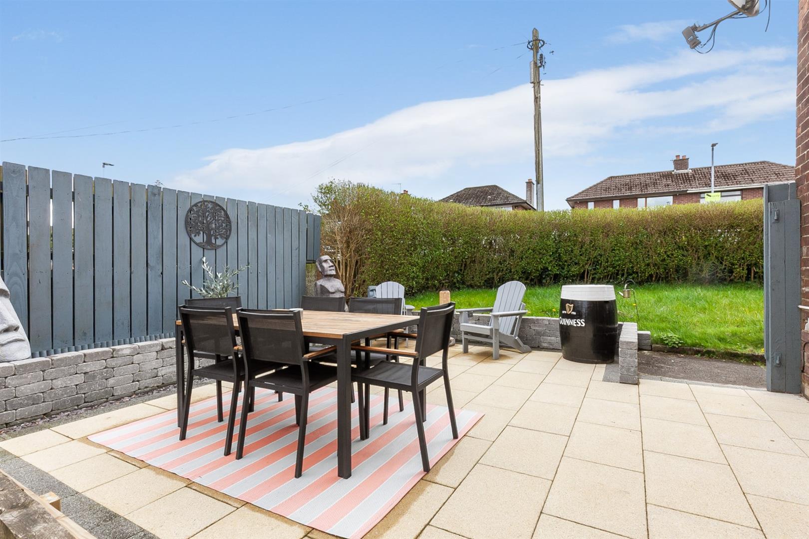 Rear garden finished in paved patio area.
