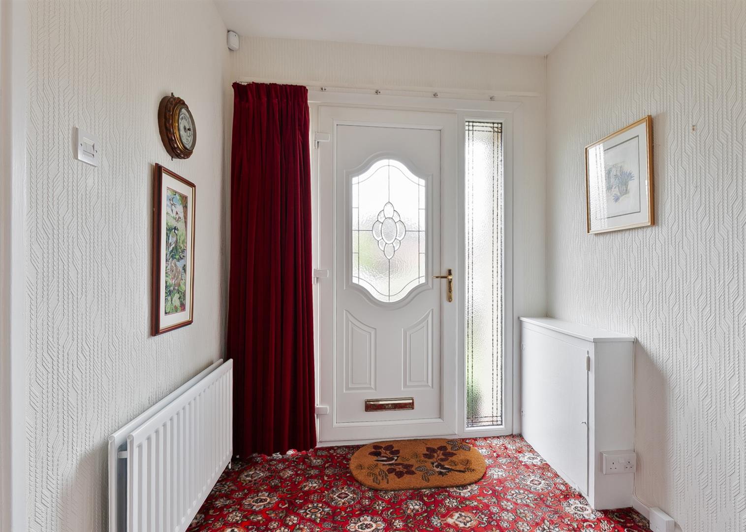 PVC double glazed front door with matching side screens. Access to cloakroom, hot press and larger roof space via slingsby style ladder.
