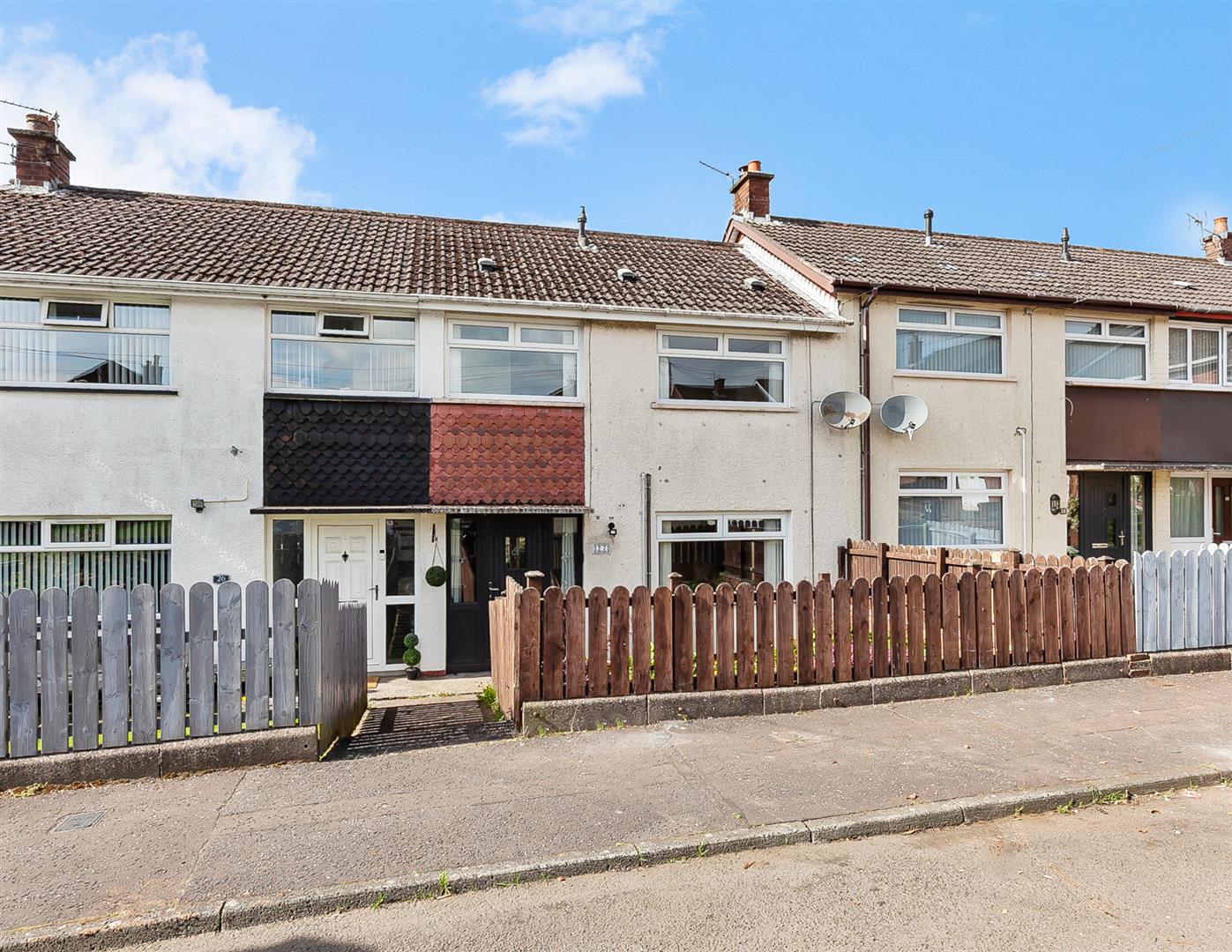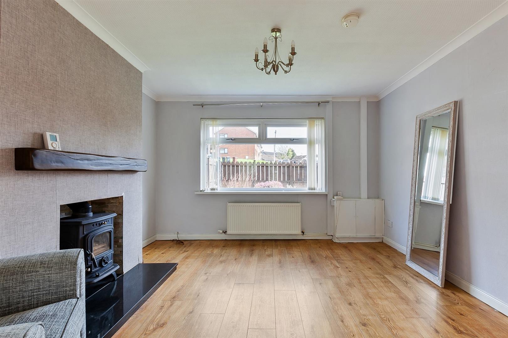 Spacious, three bedroom/two reception, mid terrace property, occupying an end of cul de sac position within the Queens Park area of Glengromley, Newtownabbey.
