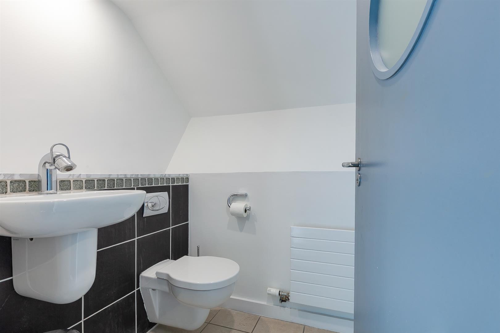 White two piece suite comprising semi pedestal wash hand basin and concealed cistern WC. Part tiled wall and tiled flooring. Recessed spotlights and radiator. Access into built in store with gas fired boiler and light.
