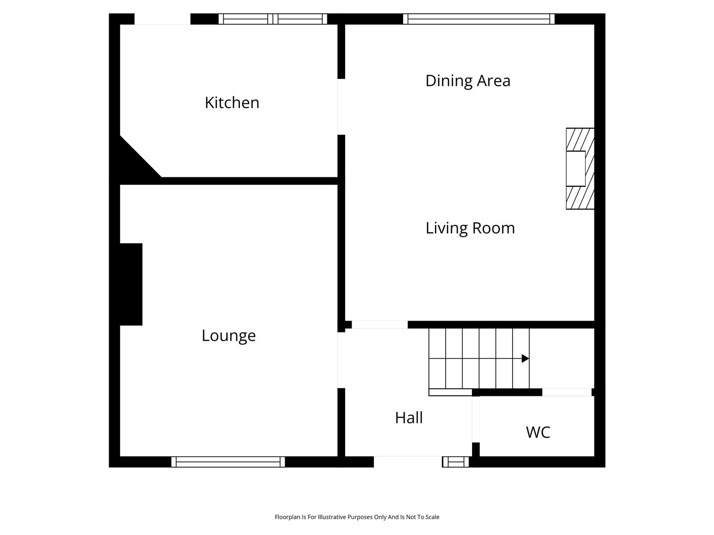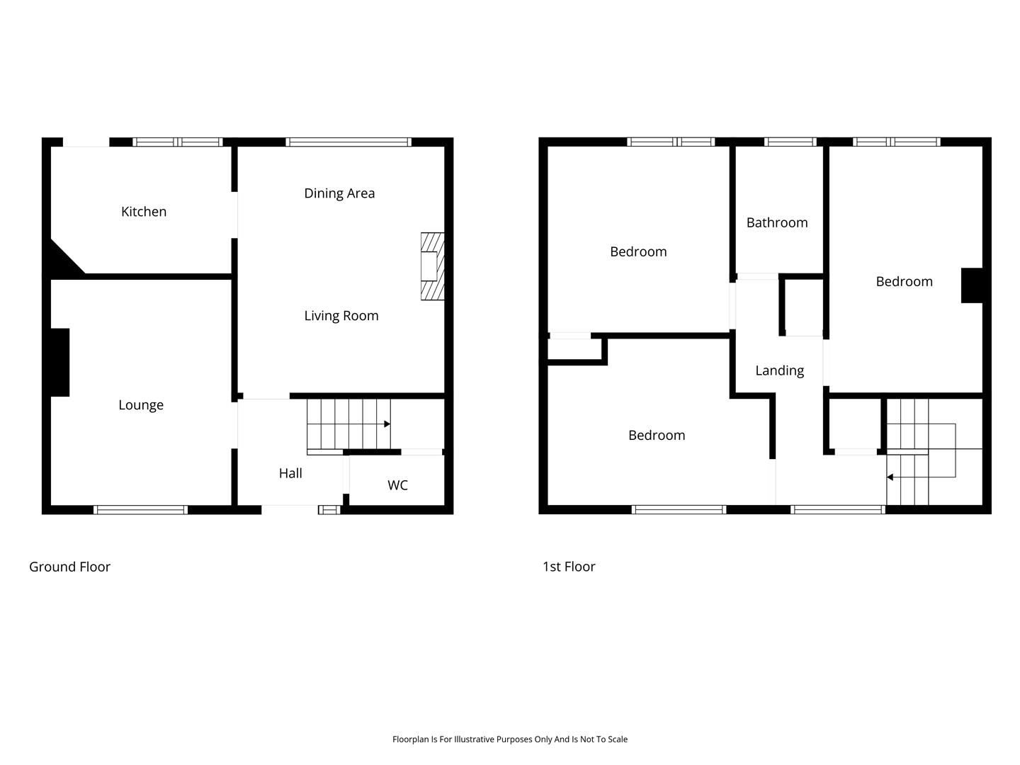 Offering adaptable accommodation, the property comprises entrance hall, lounge with stone clad fireplace, separate dining room/bedroom four, kitchen, three well-proportioned, first floor bedrooms, and bathroom with three piece suite.