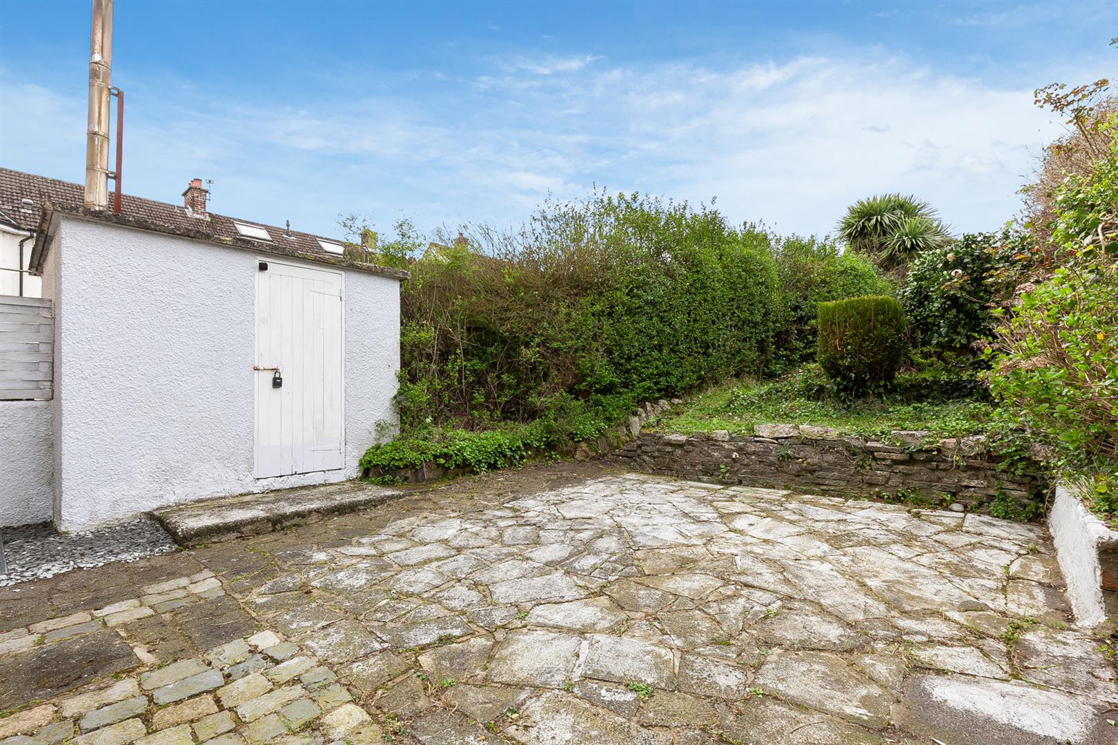 Fully enclosed rear garden finished in lawn, paved patio area and range of shrubs.