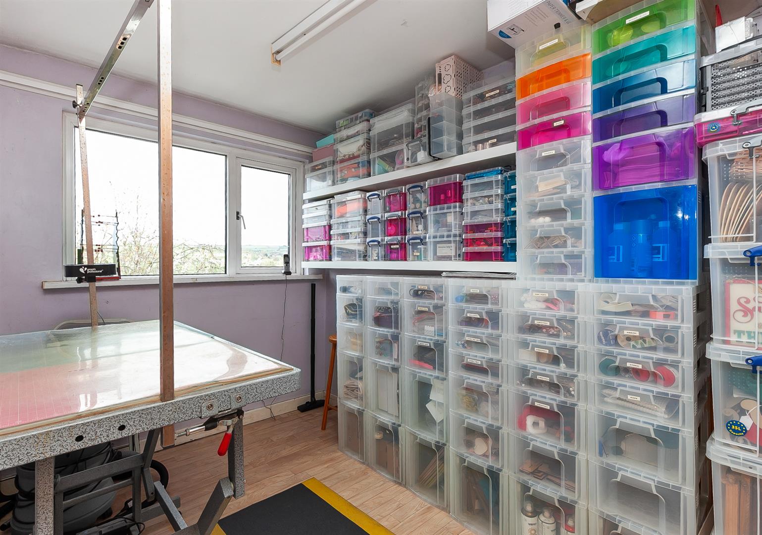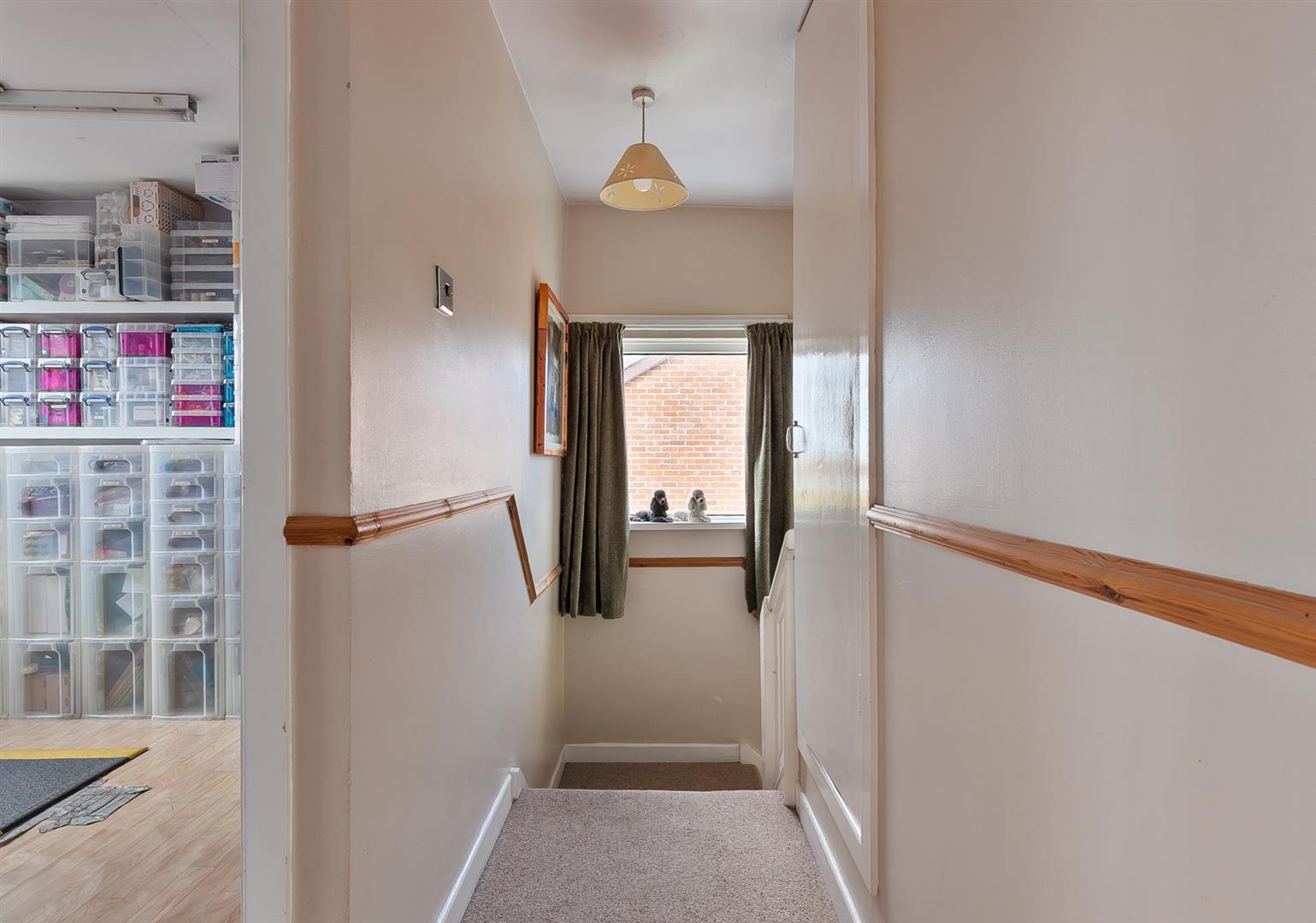Access to shelved store with gas fired central heating boiler. Access to roof space.