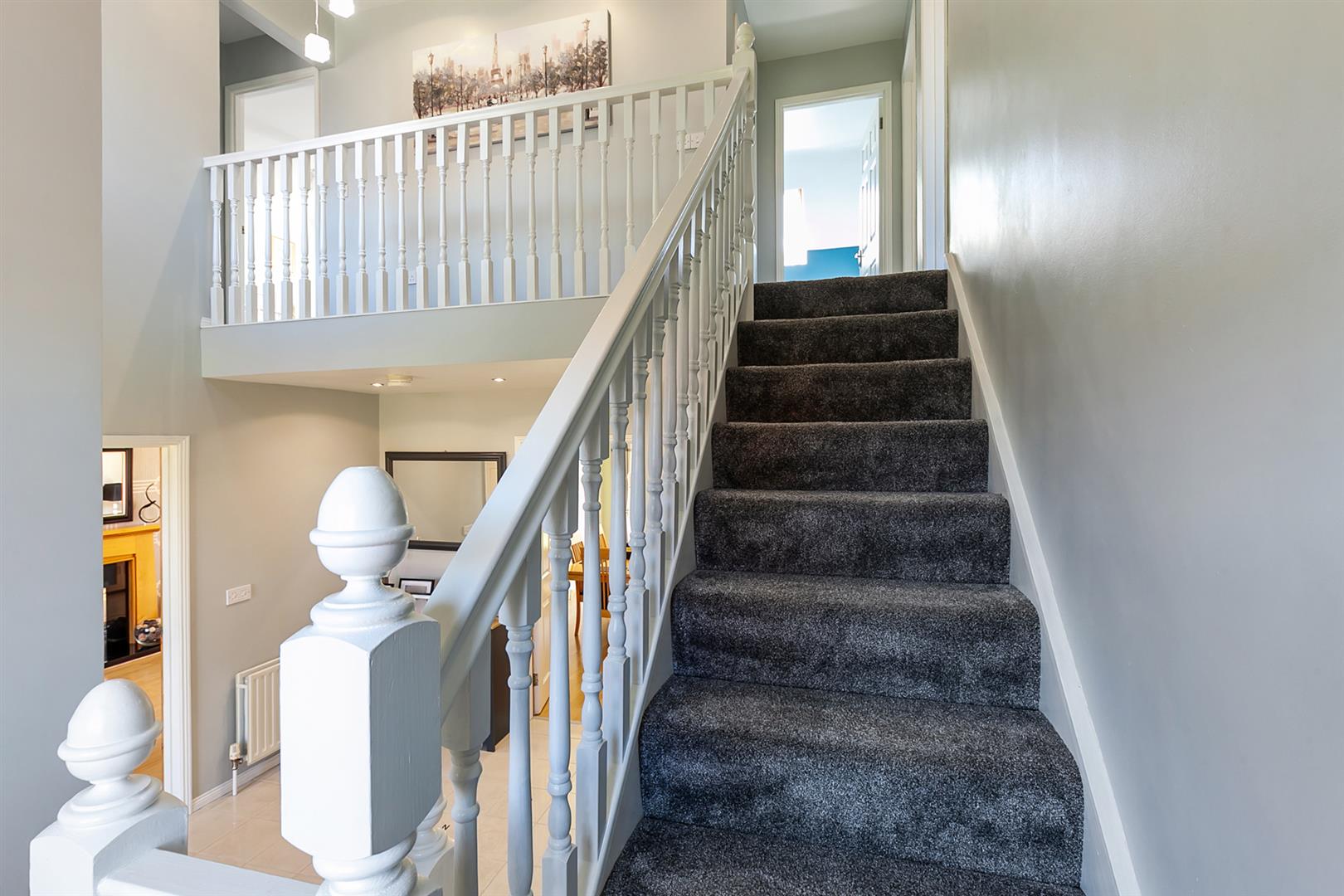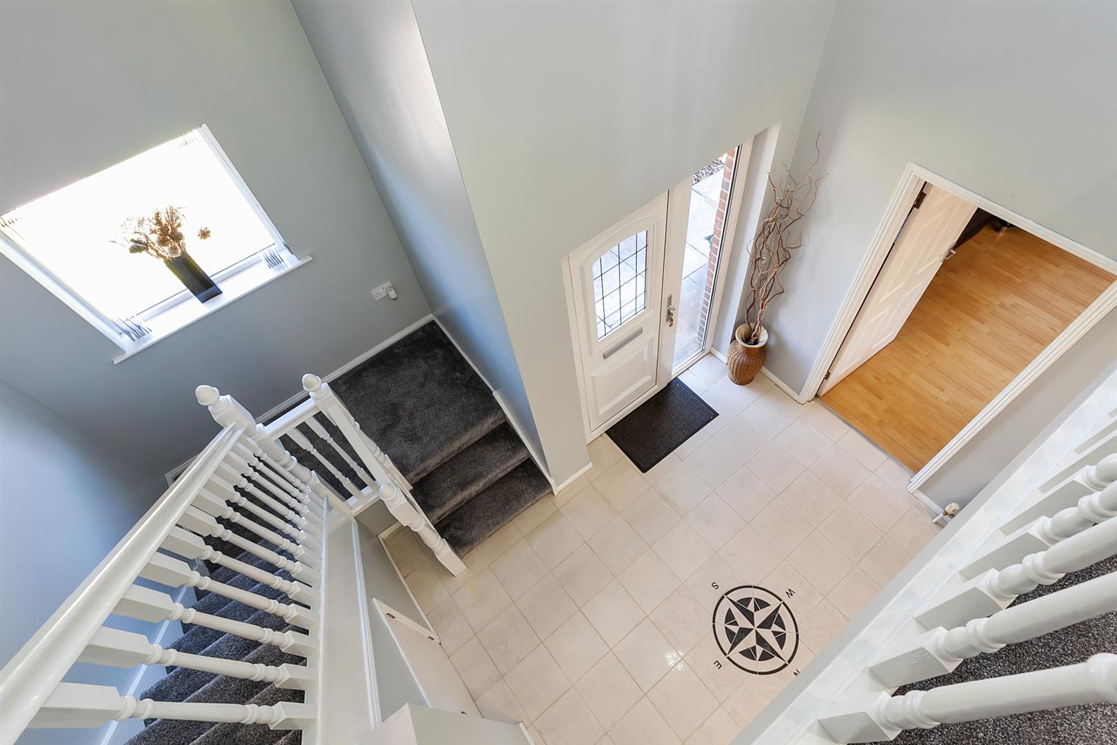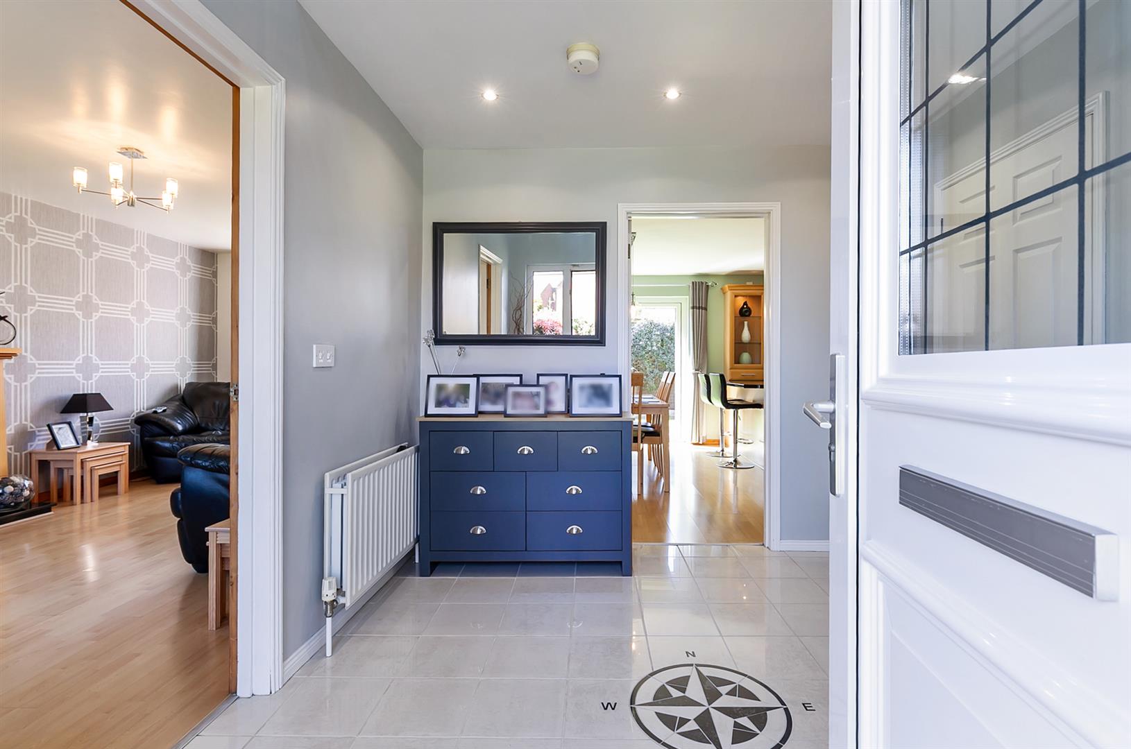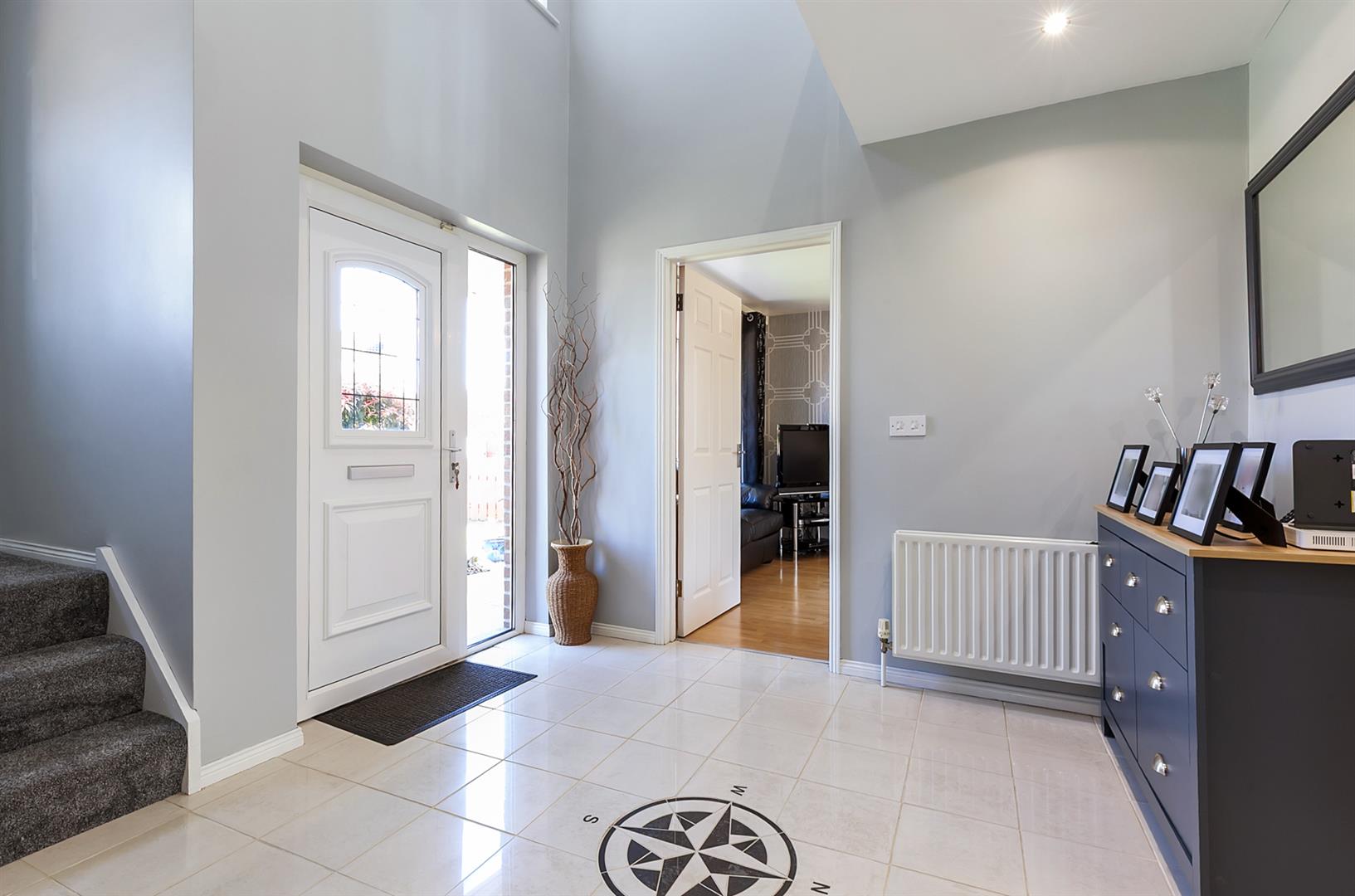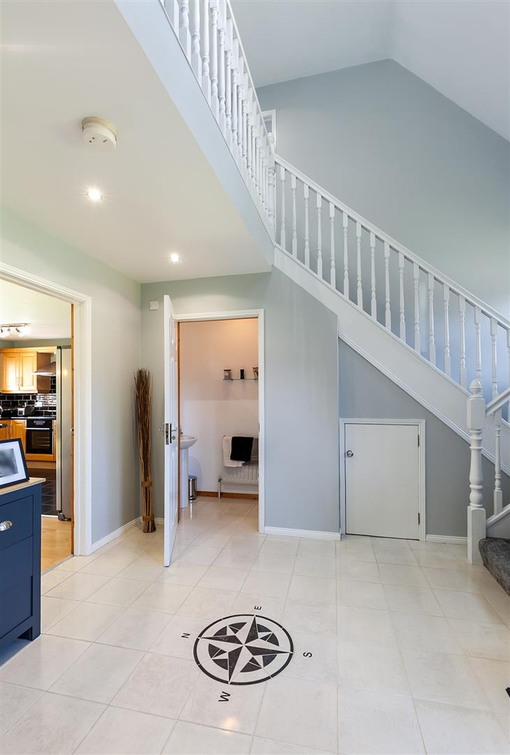 PVC double glazed front door with matching side screen. Tiled floor. Stairwell leading to first floor gallery landing. Access to under stairs store.