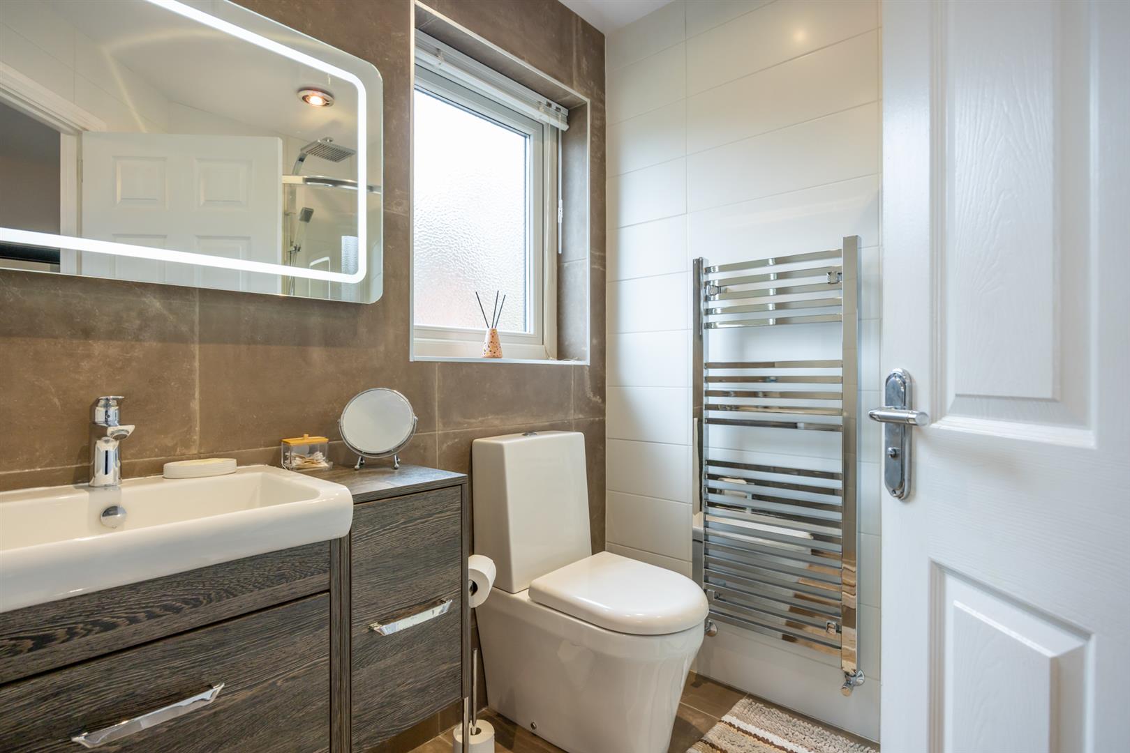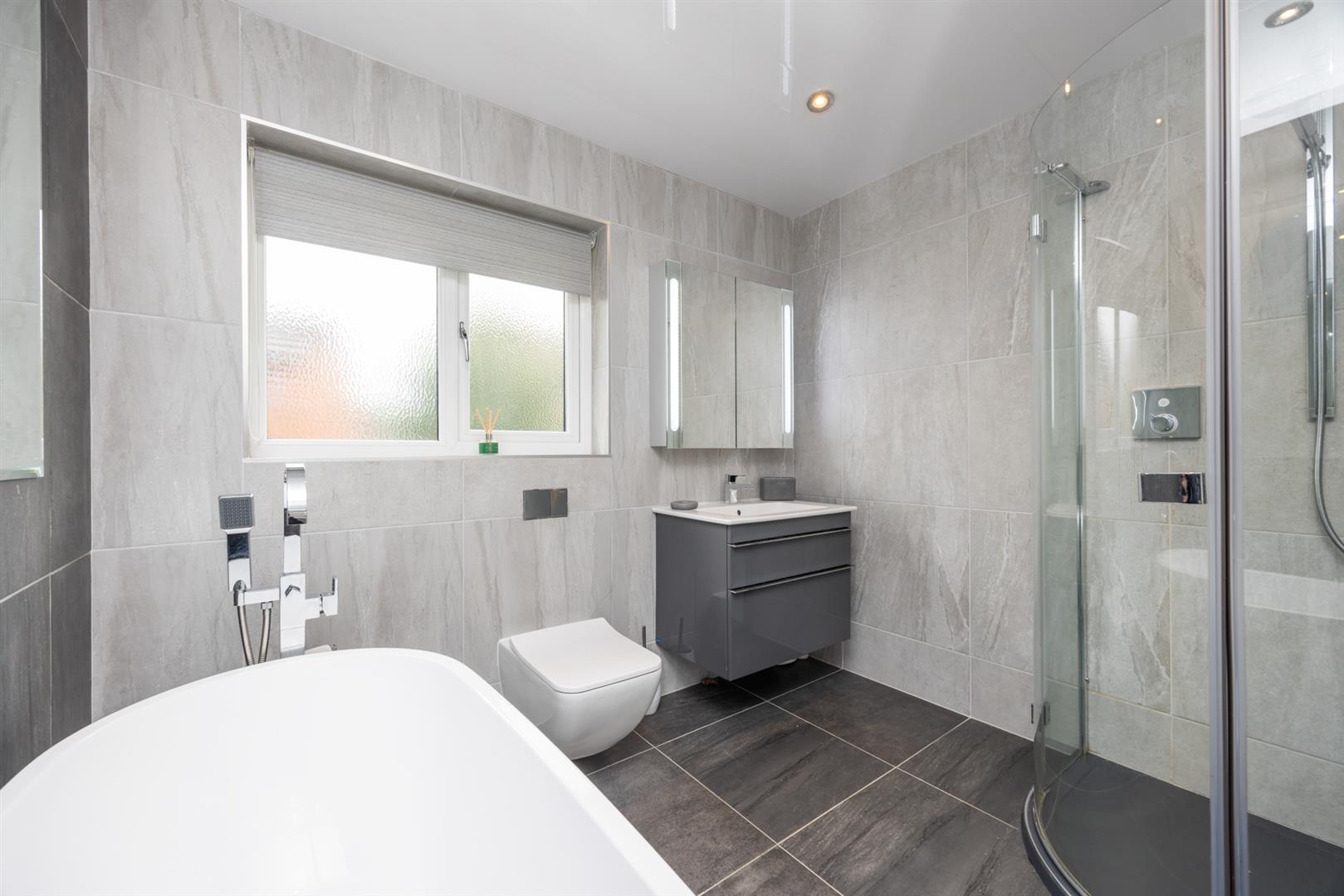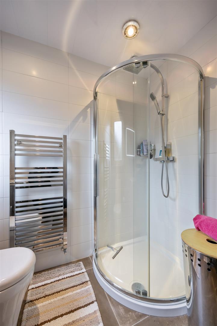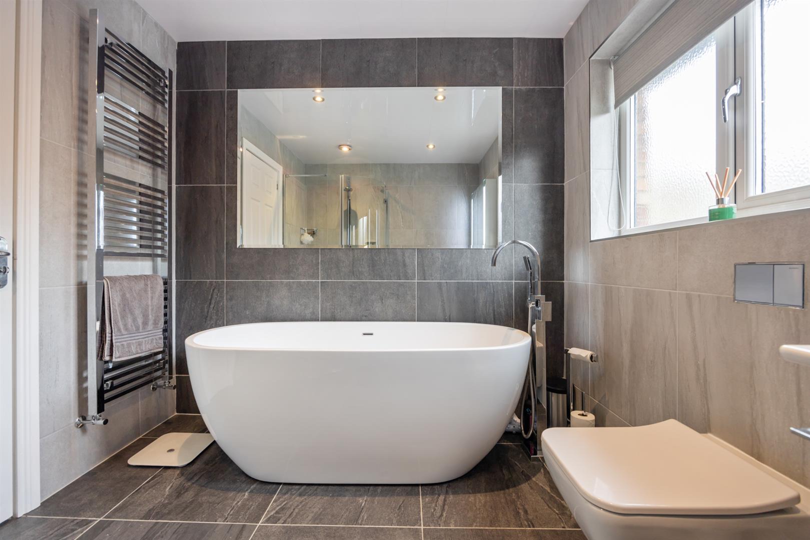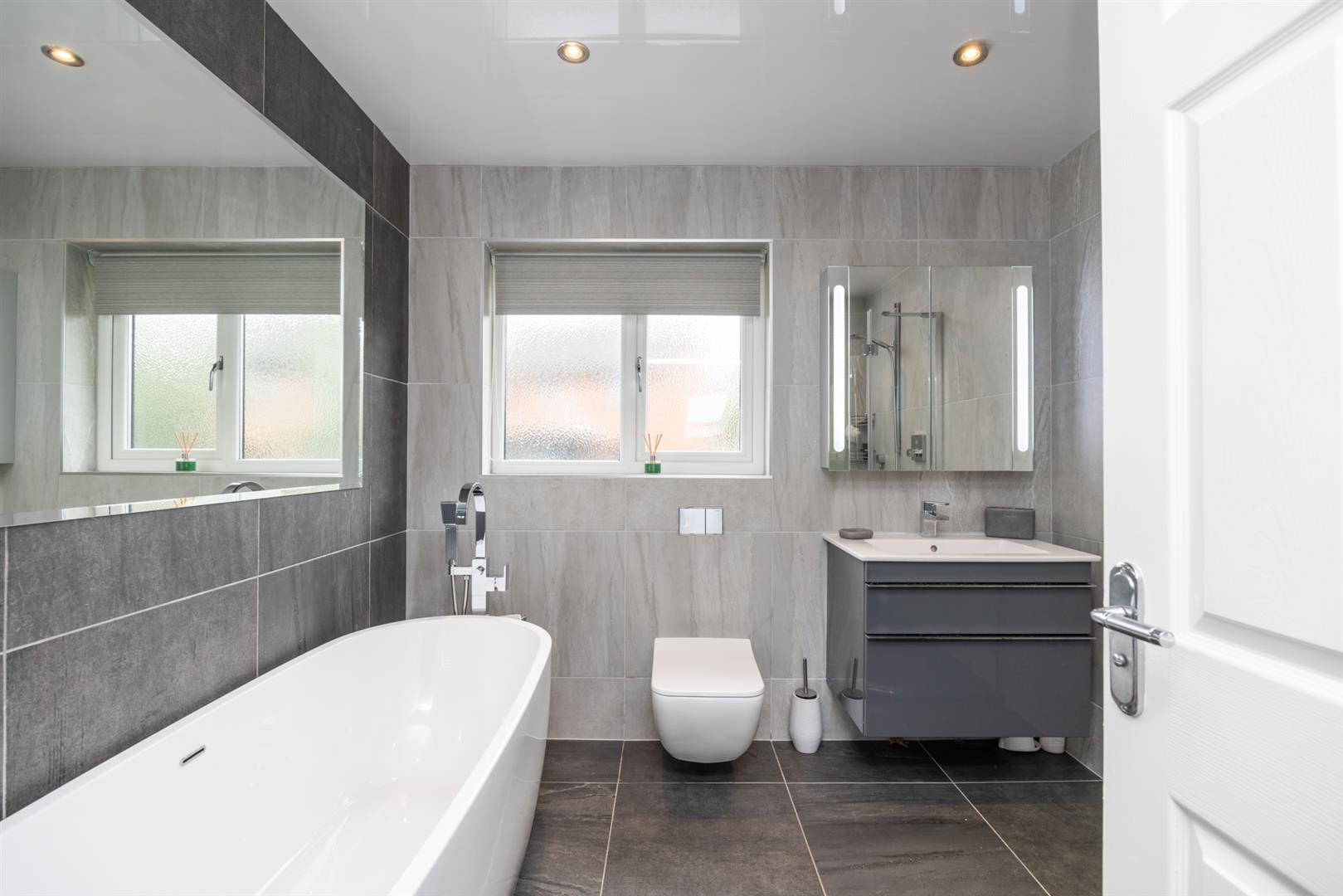 In addition, on this floor, there is a modern family bathroom with white suite and free standing bath and storage areas.
