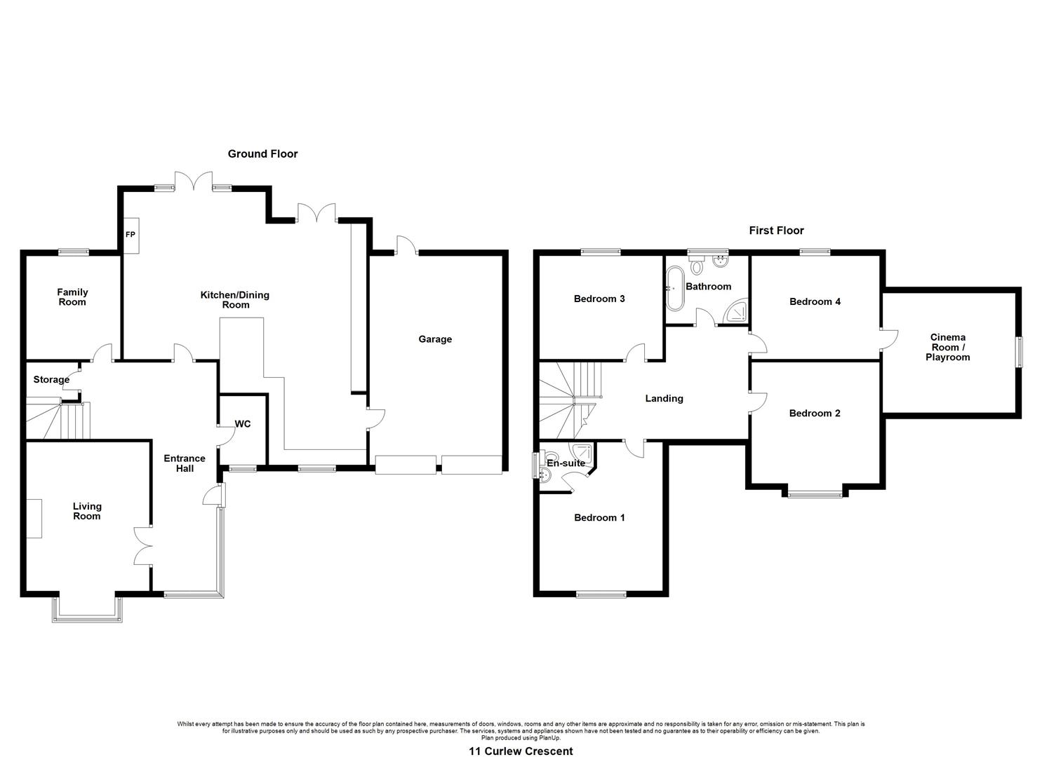 The first floor has four well proportioned bedrooms, master with ensuite shower room and one adjacent to the playroom/cinema room.