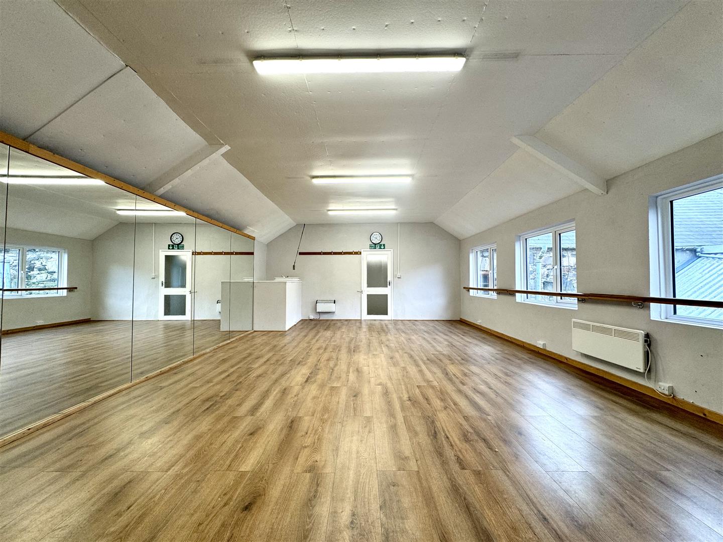 To the rear, the building benefits from a large, open-plan dance studio, providing an impressive floor area suitable for dance schools, fitness classes, creative workshops, or alternative leisure and training uses. The studio space is bright, spacious, and adaptable, making it an excellent opportunity for businesses seeking a central and accessible location.