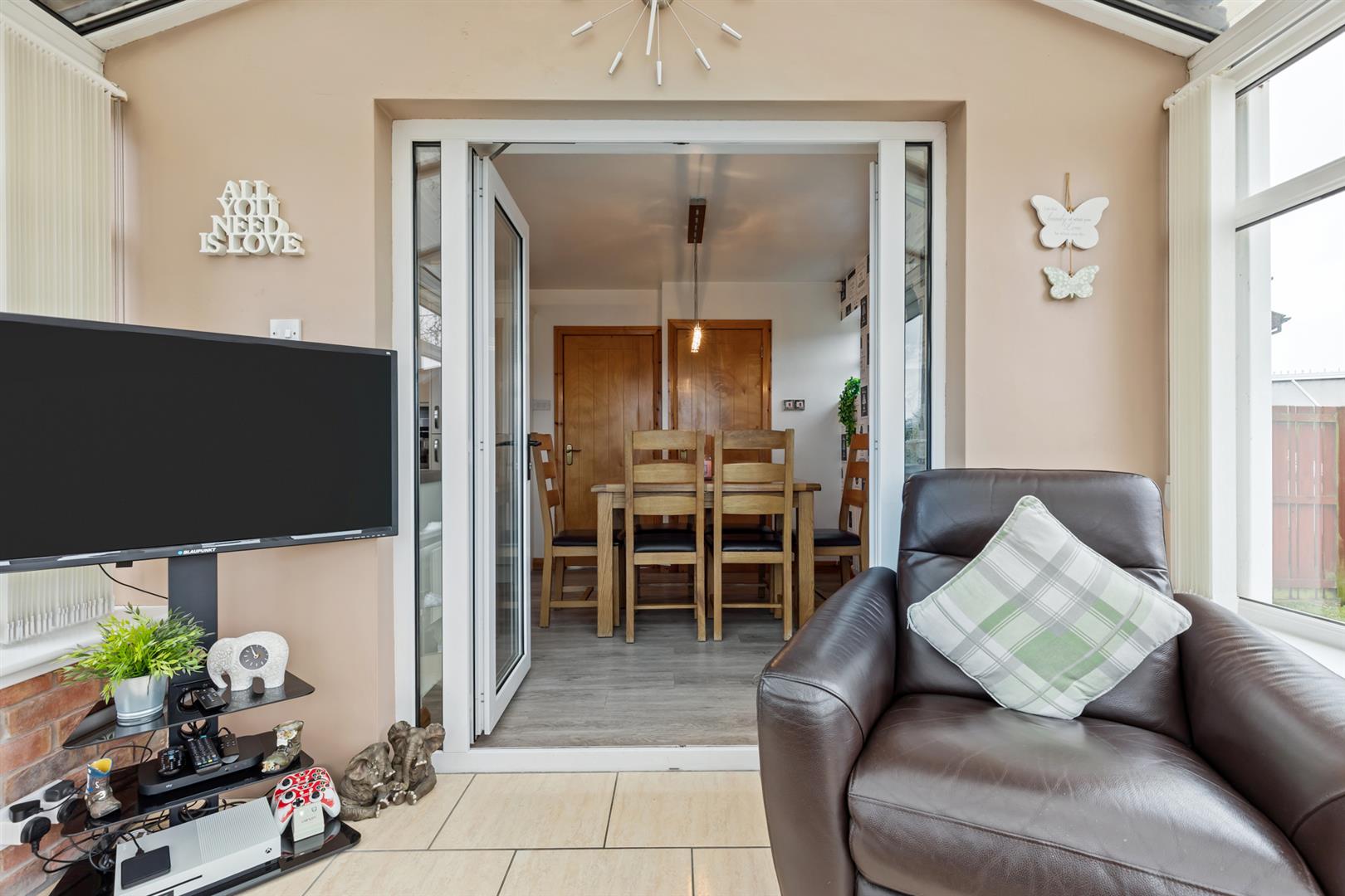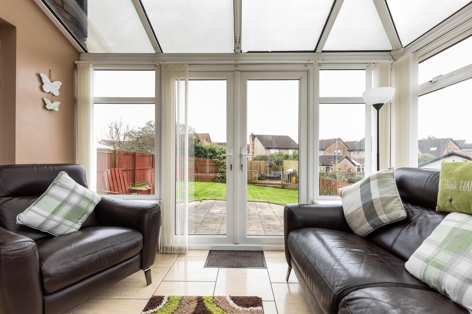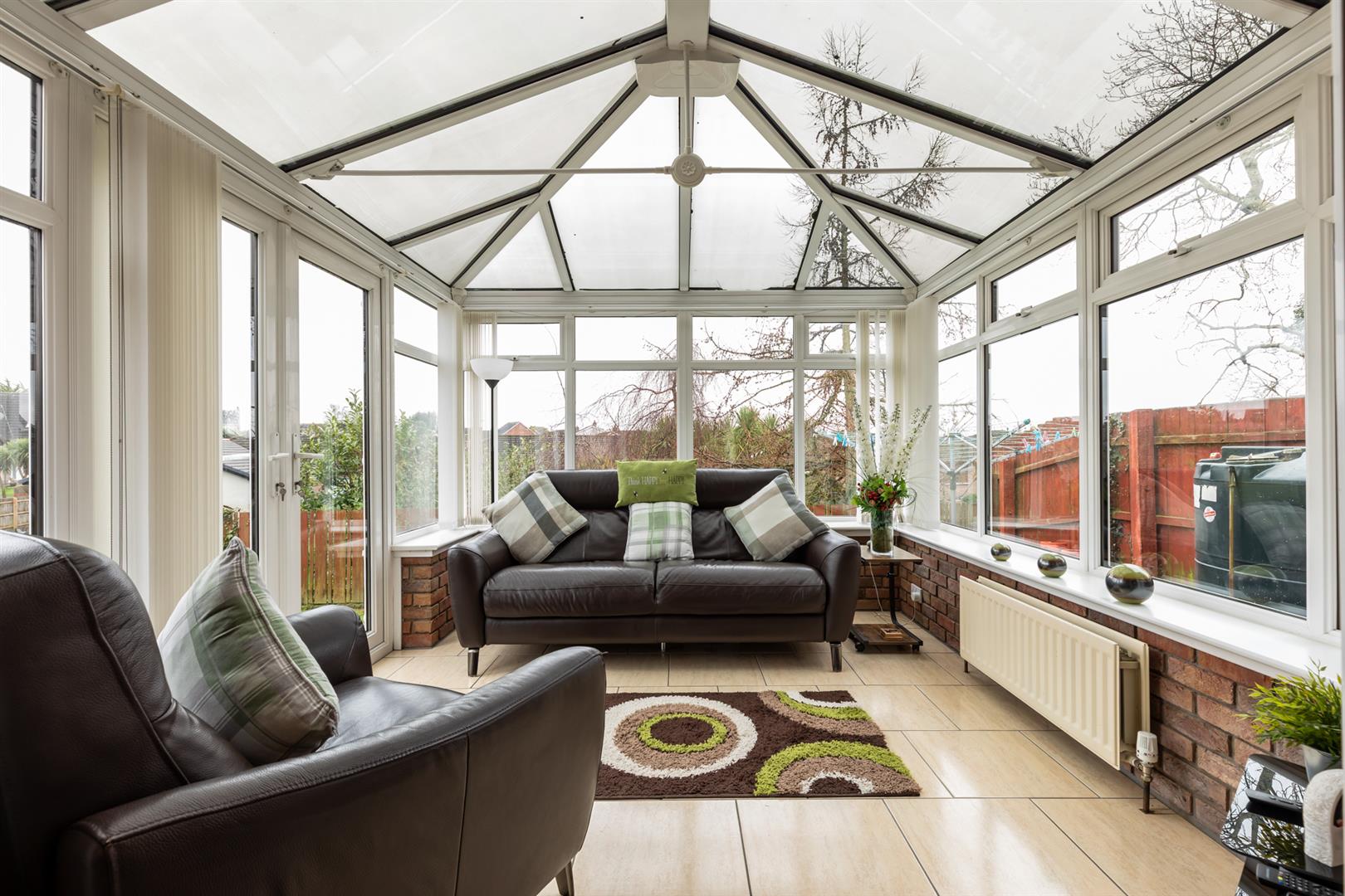 Sunroom to the rear with tiled flooring and double doors leading to the rear garden
