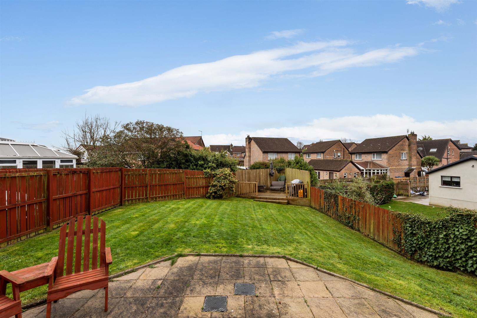 Rear: Enclosed rear garden with a paved area and decking.