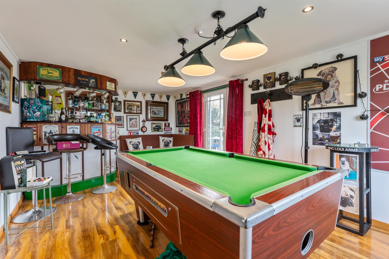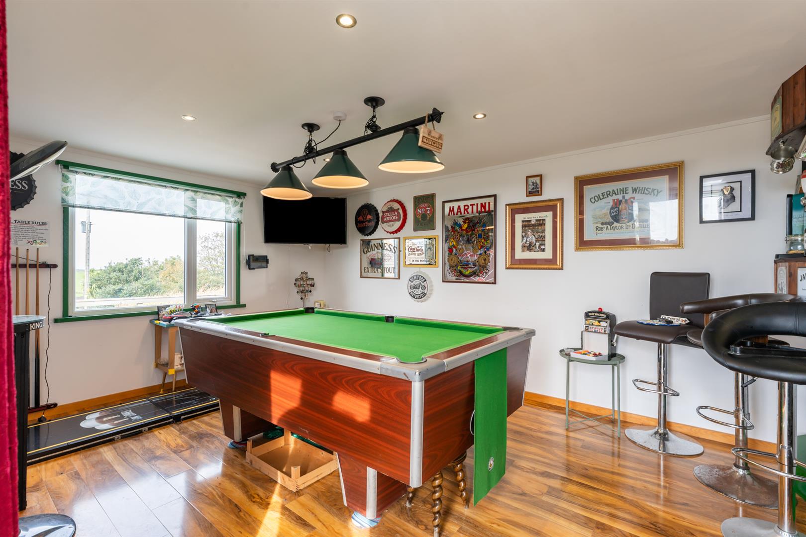 Rear: Fully insulated games rooms/ bar area with electric, power and views of rural fields and Strangford Lough.