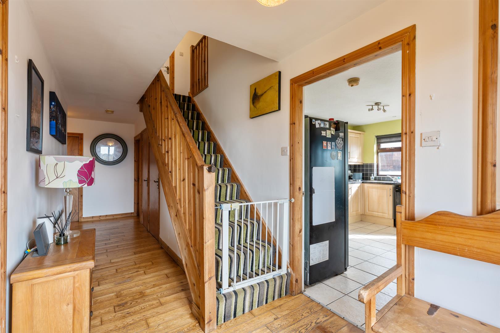 On entering the home, there are two reception areas; a large living room with multi-fuel burning boiler stove providing extra heating to radiators throughout the home, and kitchen open plan to a cosy family room. The ground floor further benefits from a modern shower room and three bedrooms; one currently being used as an office and one with a large ensuite bathroom.