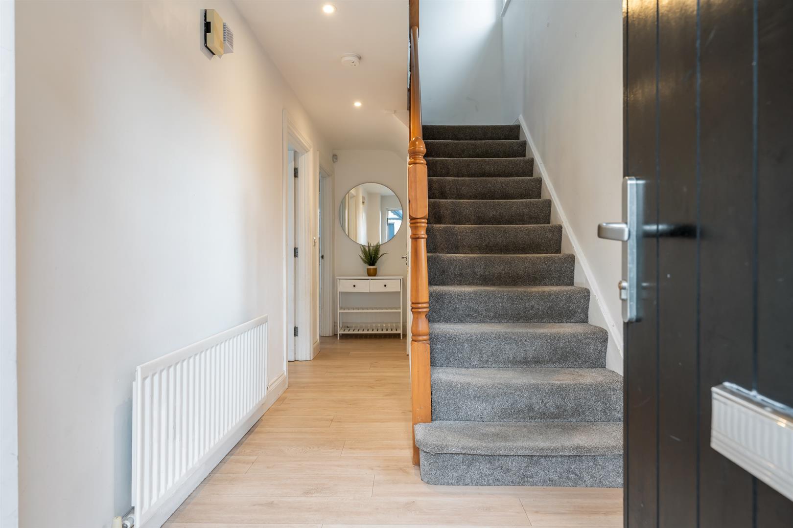 Upstairs, there are three well-proportioned bedrooms, including a master with ensuite shower room and dual-aspect windows, as well as a contemporary family bathroom with white suite and additional storage accessed from the landing. The property benefits from uPVC double glazing and Phoenix Gas central heating throughout.