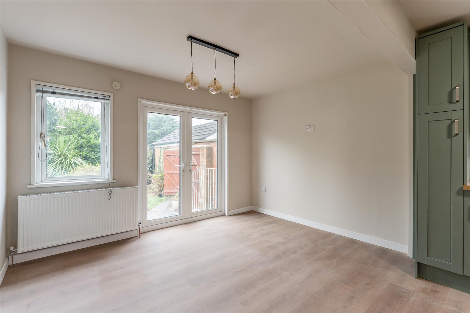 Wood effect LVT flooring, patio doors to enclosed rear garden.