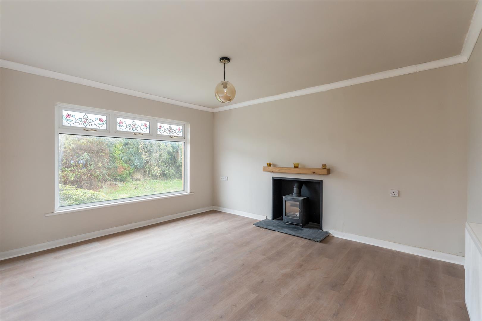 The entrance hall leads to an elegant living room centred around a contemporary wood burning stove, creating a warm and inviting focal point. The spacious open plan kitchen and dining area features an excellent range of high and low level units and integrated appliances perfect for modern family living and entertaining. A modern bathroom suite with freestanding bath, luxury shower, and matching vanity with storage completes the ground floor, alongside two bedrooms, one benefiting from built-in storage.