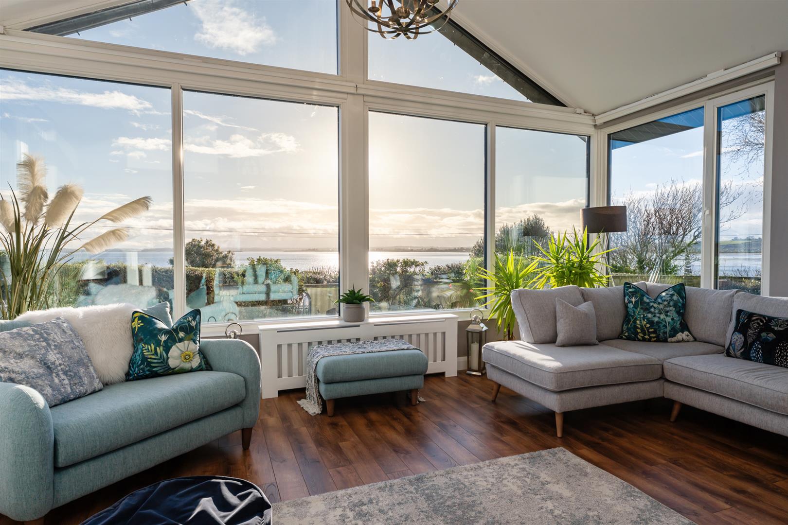 Beautifully landscaped grounds include a newly tarmacked driveway with stone-clad entrance pillars, granite-edged beds, lawns, lighting scheme, greenhouse, gated parking area and patio space. The raised south-facing front garden, with artificial lawn, flowerbeds and BBQ area, provides an extraordinary vantage point to enjoy the panoramic lough views.