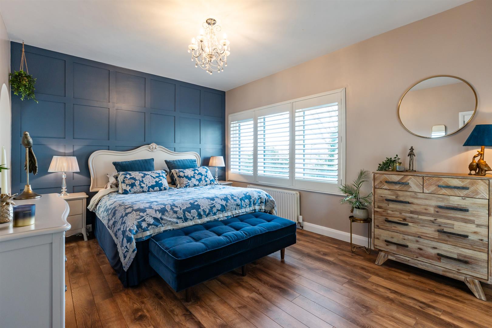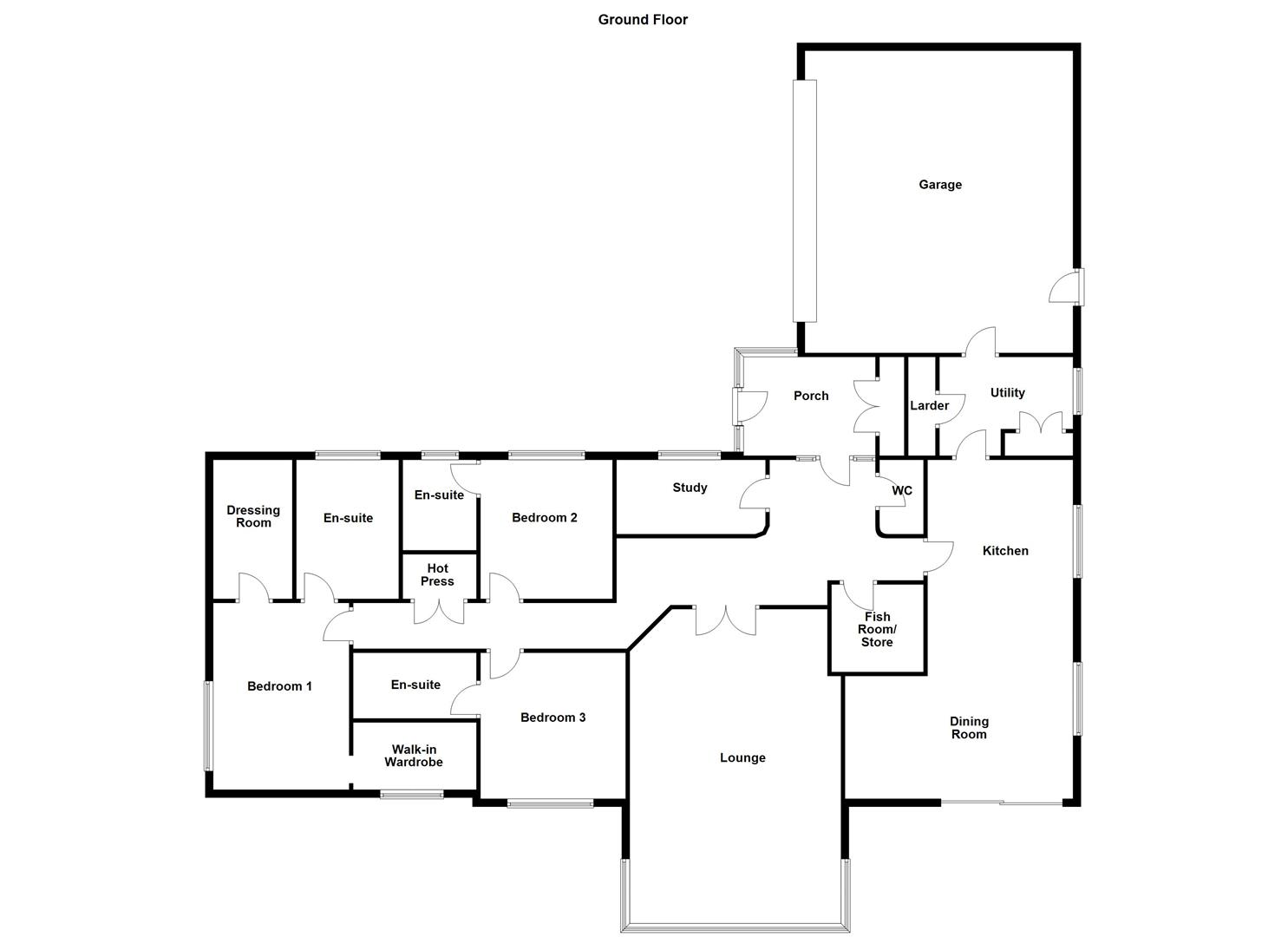 The principal bedroom suite offers a dressing room, walk-in-wardrobe and a stunning ensuite with freestanding bath and walk-in rainfall shower. Two additional bedrooms each enjoy their own ensuite, and the property further benefits from a study and a versatile store/fish room. The integrated double garage features an insulated electric door, power, lighting and the oil boiler.