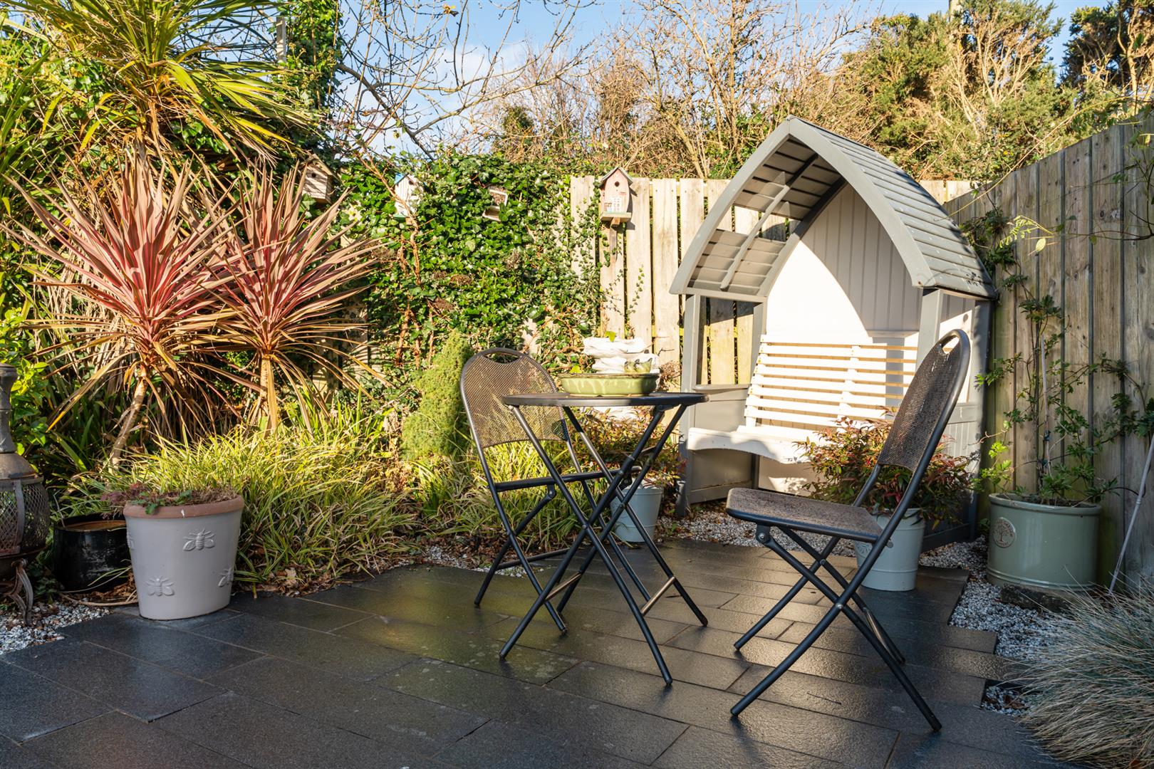 Landscaped gardens with tarmac driveway, gated parking, greenhouse, patio garden and a south-facing terrace capturing all-day sun
