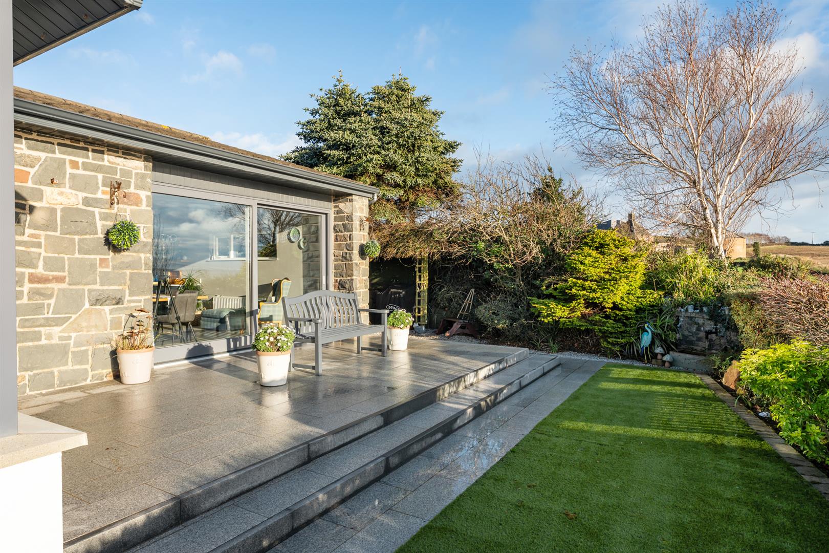 Recently tarmac driveway with feature Z stone clad entrance pillars, generous planted flowerbeds, lawn and lighting scheme, leading to gated parking area to rear. Granite stone boarded flowerbeds, greenhouse positioned above GRAF water treatment tank and patio garden. A further gated area with garden shed and oil storage tank. Raised south-facing front garden with granite paved area, artifial grass, flowerbeds and BBQ area, the perfect sun spot with panoramic lough views.