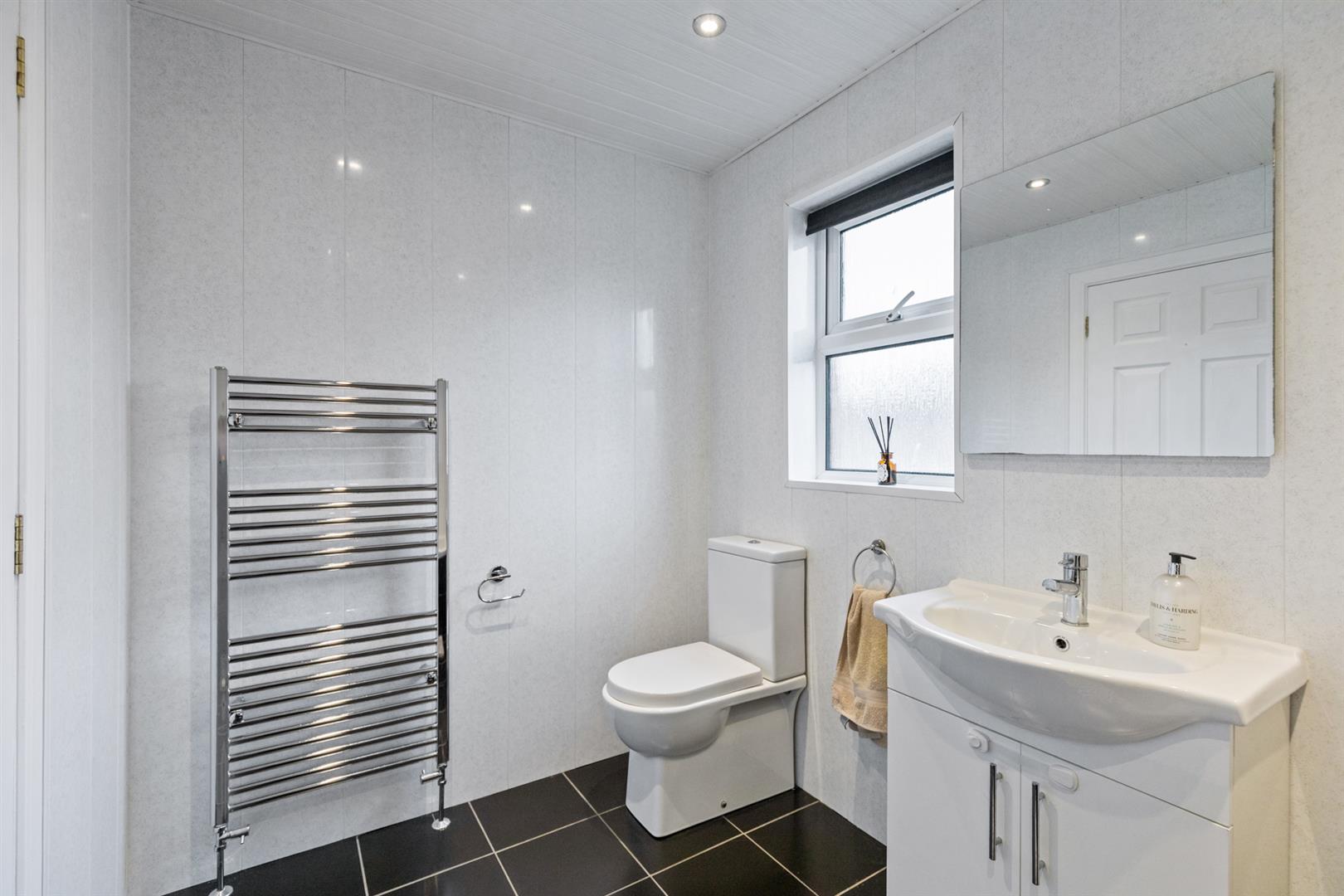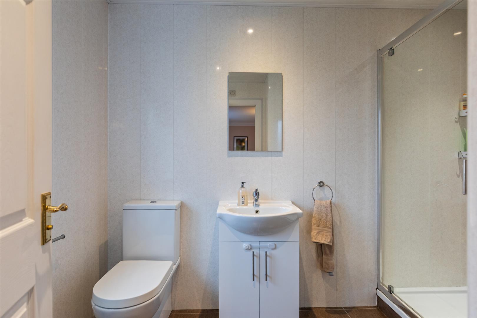 On the first floor, there are three well-proportioned bedrooms. The principal bedroom benefits from built-in robes and a private en-suite shower room. The remaining bedrooms are both generous in size, one of which includes built-in storage, and are serviced by a modern family bathroom with white suite.