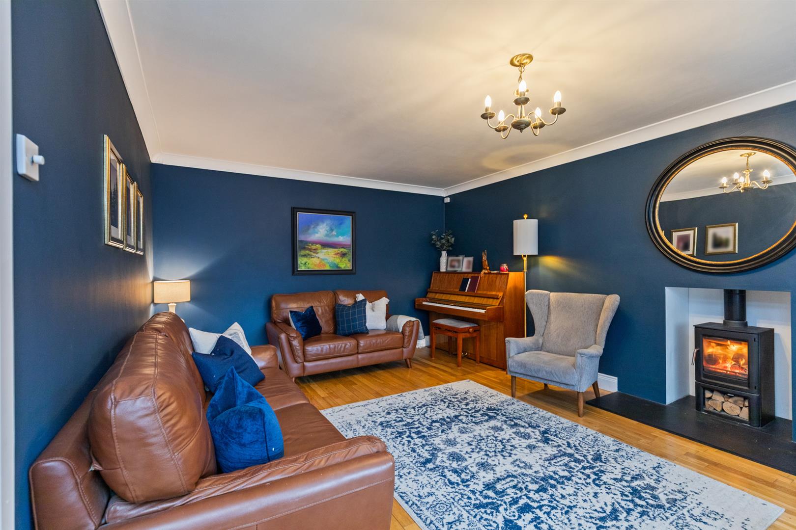 Spacious Living Room With Wood Burning Stove And Bay Window