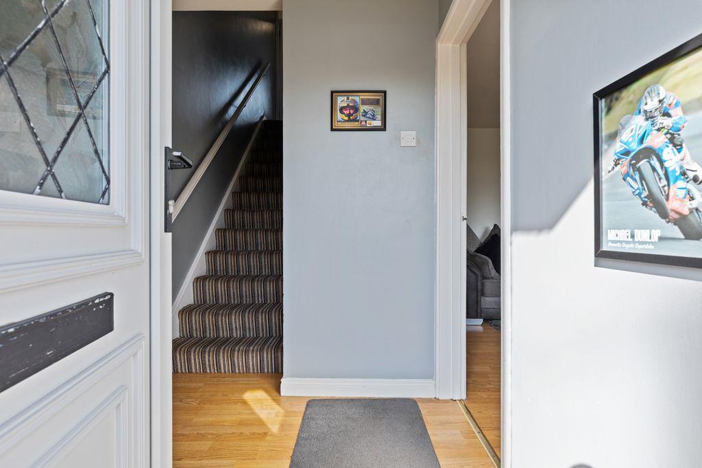 At first floor level the home boasts a traditional 3 bedroom layout all of which provides built-in wardrobes and special mention must be made of the excellent 3 piece white shower room with panelled walls, tile effect wooden laminate flooring and a feature wall mounted heated towel rail.