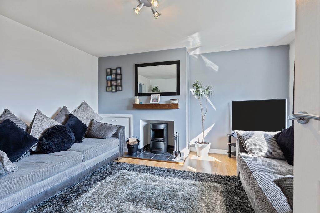 Wooden laminate flooring. White uPVC double glazed windows. Feature hole in the wall fireplace with tiled hearth (not presently in use), railway sleeper style mantel. Wooden laminate flooring. 2 Double panel radiators.