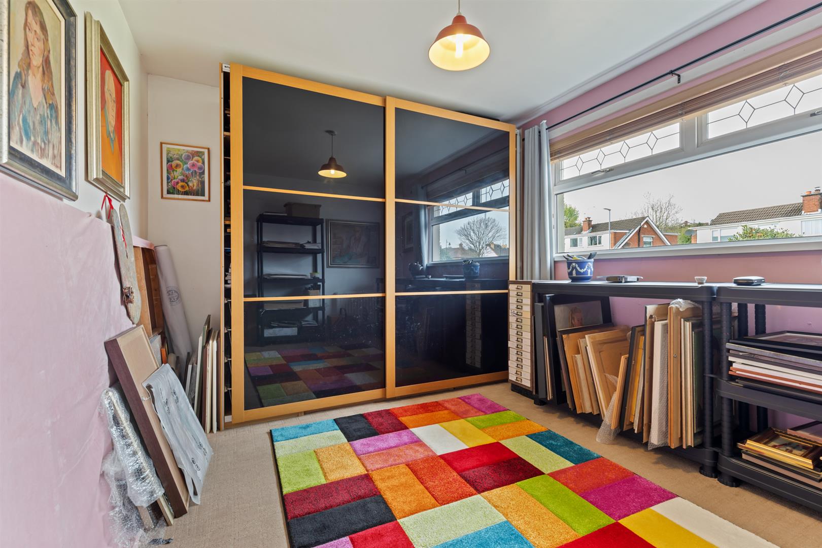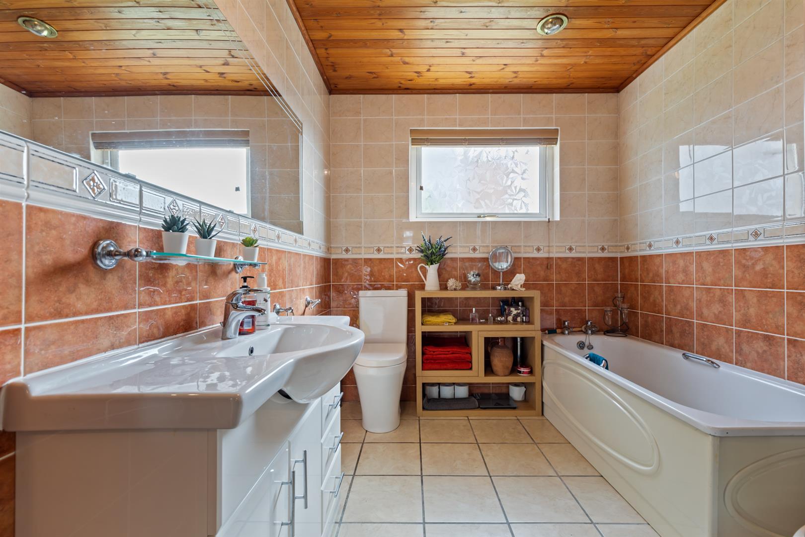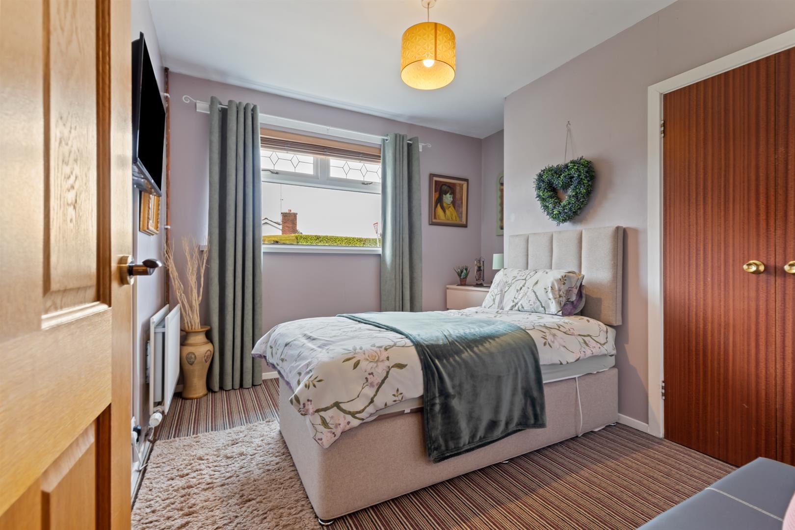 The property offers three well-proportioned double bedrooms, including one benefiting from built-in robes. The family bathroom is finished with a white suite, including both a panelled bath and separate corner shower cubicle, complemented by fully tiled walls and flooring.