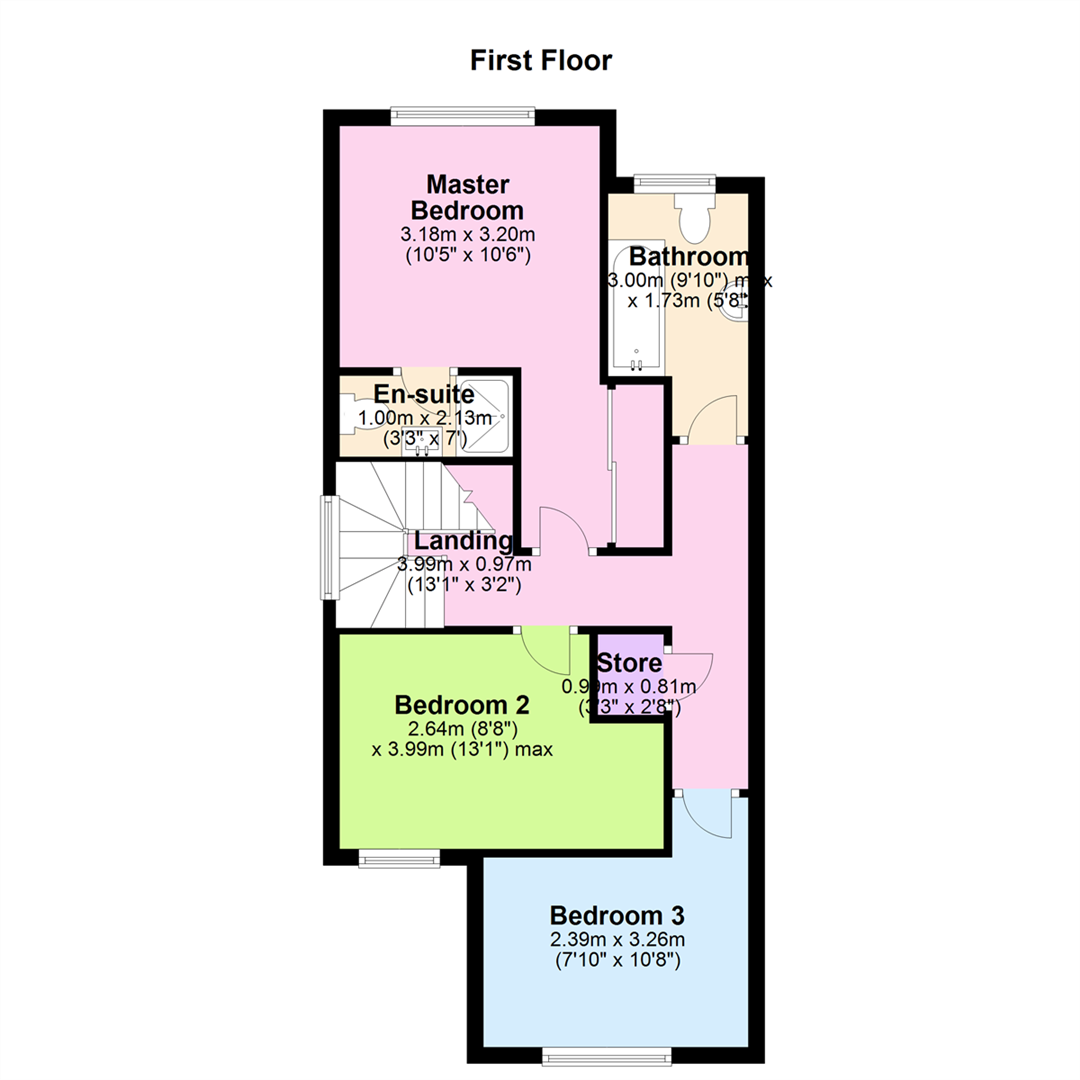 Landing 13'1" X 3'2" (3.99m X 0.97m)