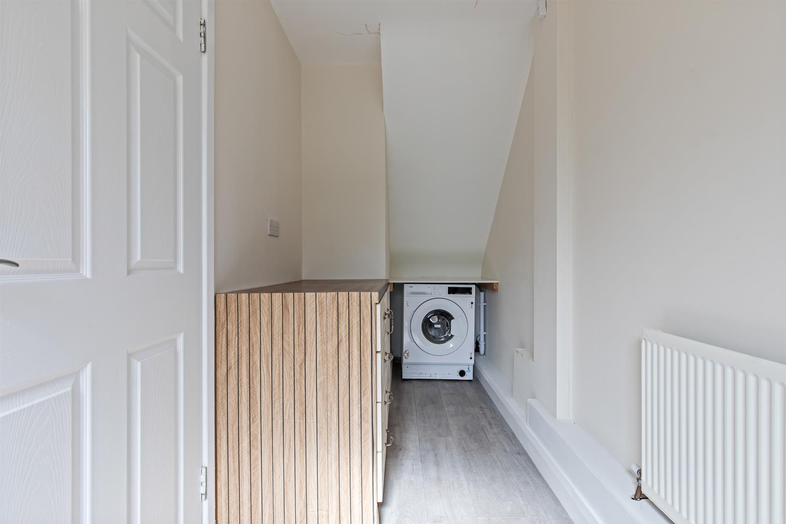 Separate utility room with additional storage and access to rear garden