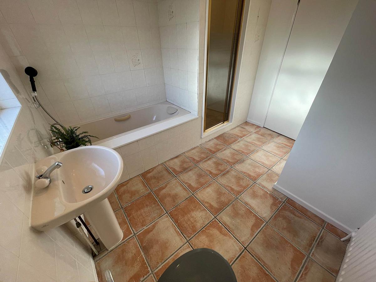 Part tiled wall and tiled flooring