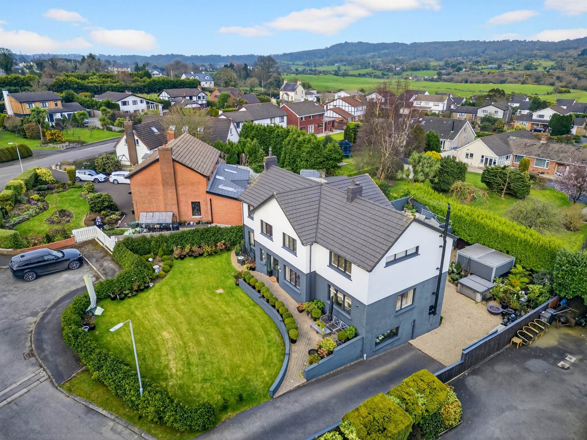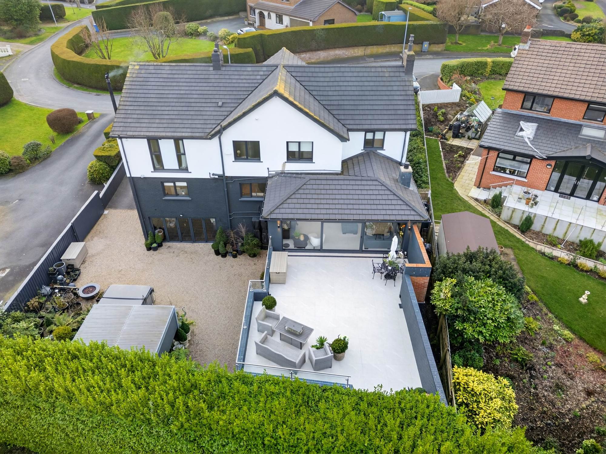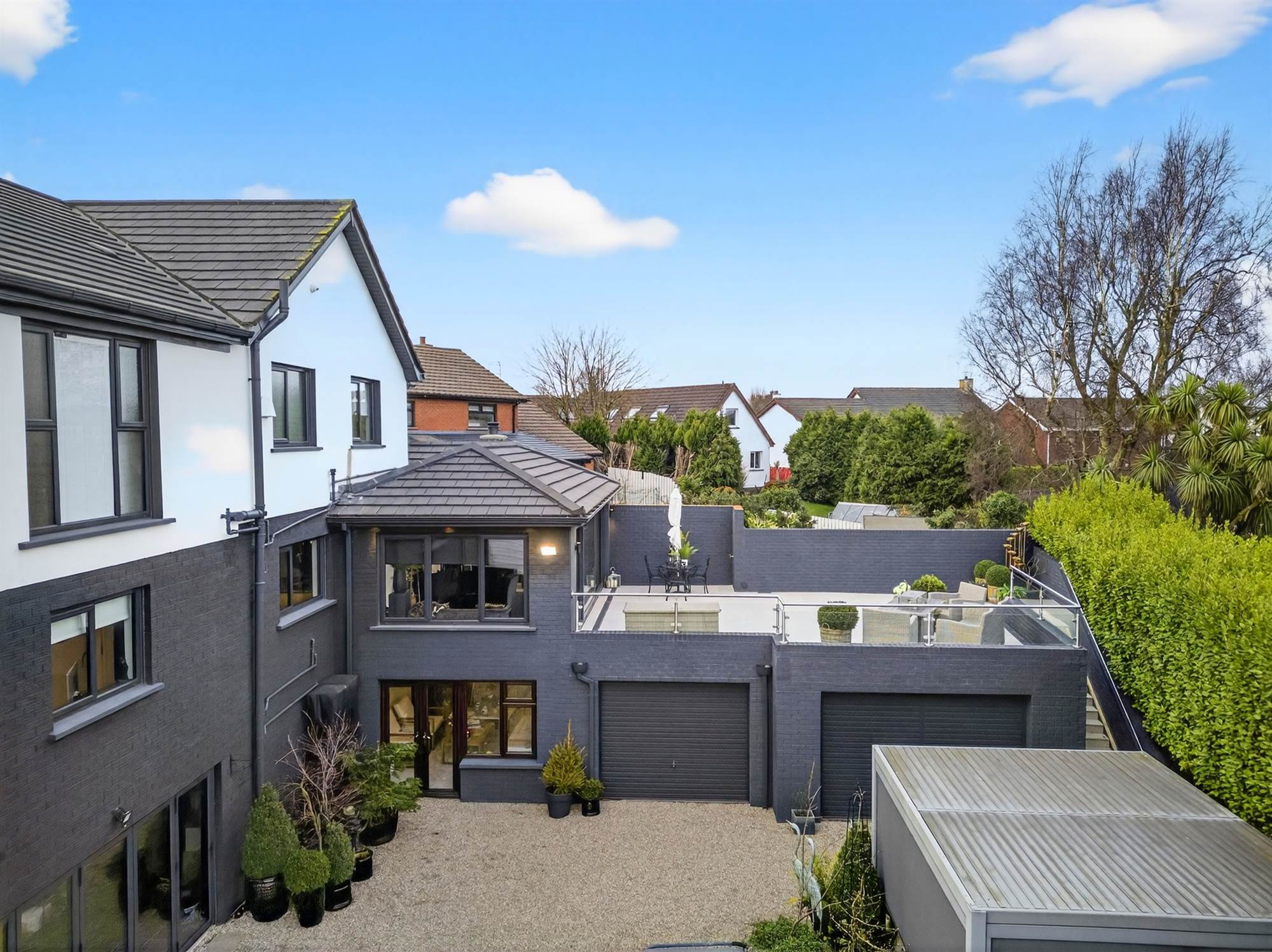 Further enhancing the appeal is an extensive basement level incorporating a large studio, playroom and exceptional storage facilities, making it ideal for a home business, creative space or multi-generational living. With two garages, excellent outdoor space and a high-quality finish throughout, this is a superb home offering both comfort and versatility in a highly sought-after location.