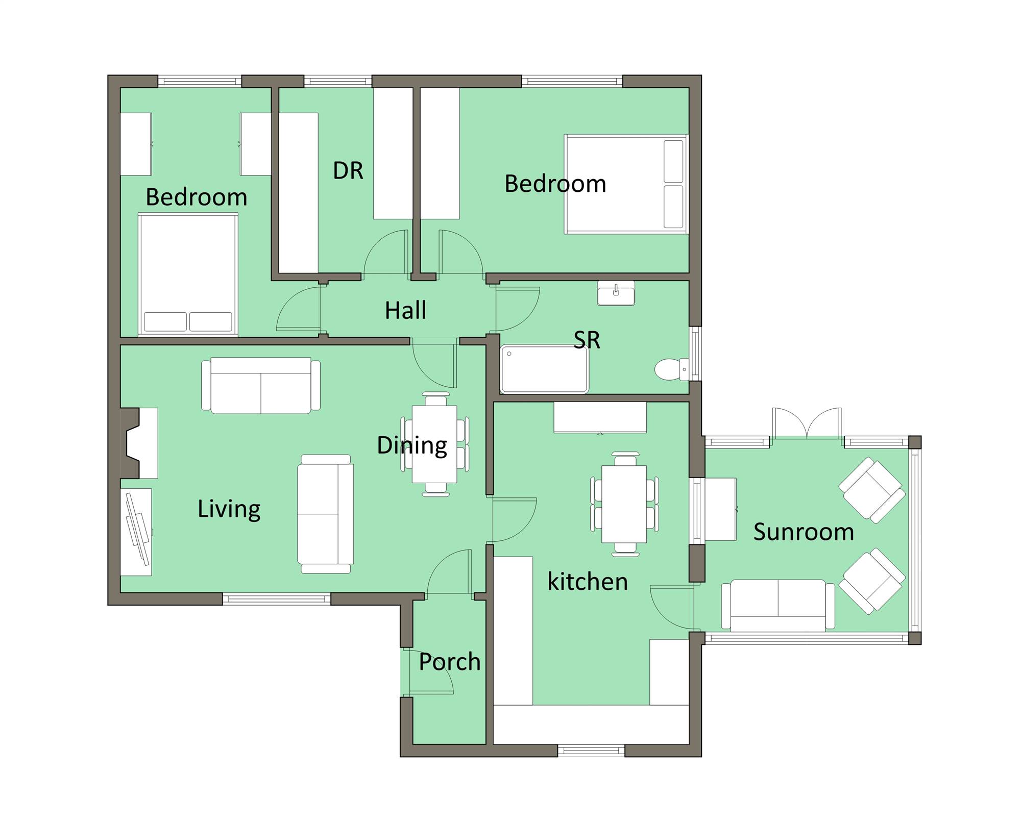 Laminate wood effect floor, two radiators, uPVC double glazed door to exterior.