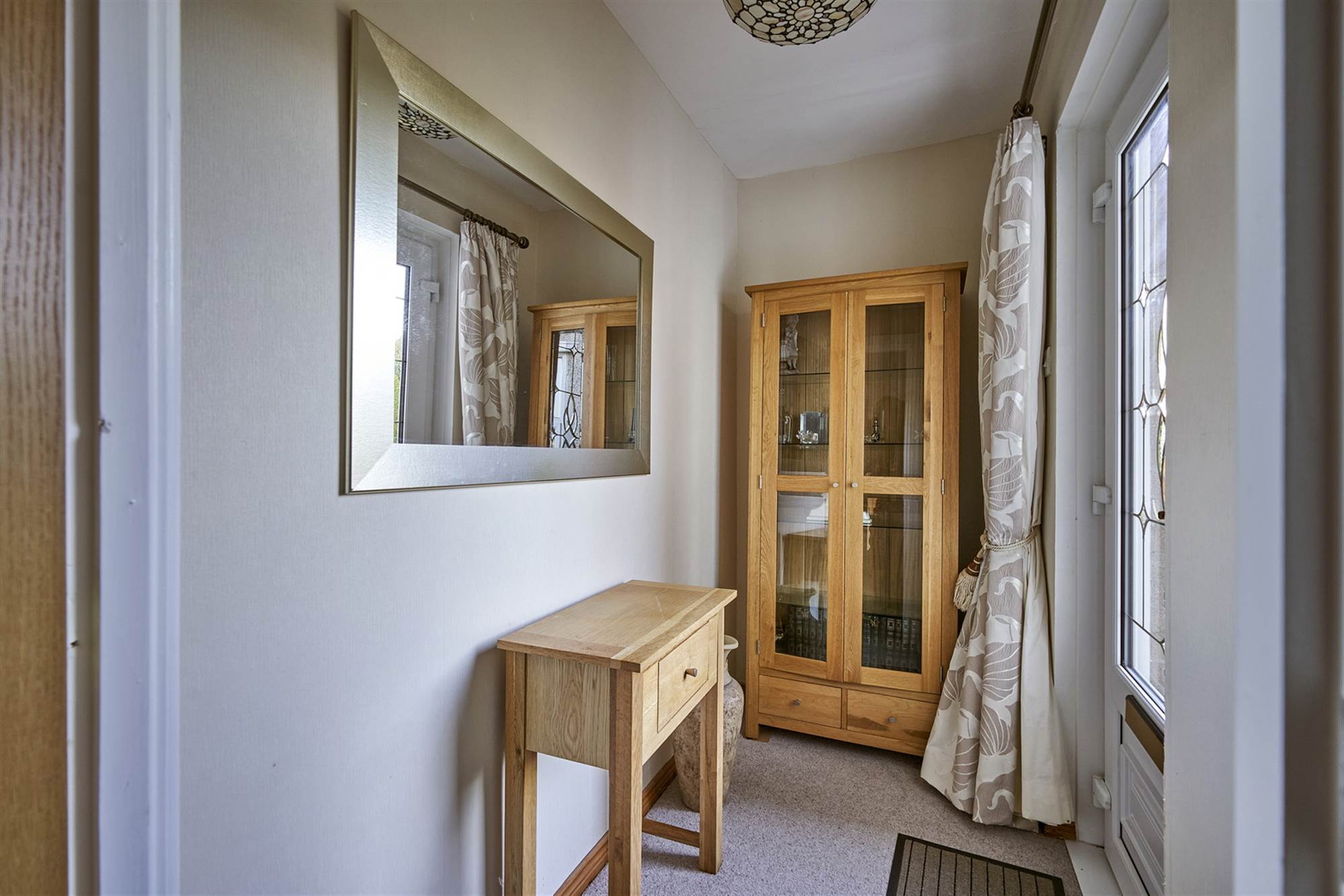 Offering bright and spacious accommodation, the bungalow offers a three bedroom / two reception room adaptable layout. Decorated in neutral tones, the property is well-presented throughout, and is further enhanced by oil fired central heating and uPVC frame double glazed windows. A pedestrian gate to the front in complimented by driveway access to the side, leading to a detached metal garage. The notably spacious garden is in lawn with feature patio areas bordered by hedging.