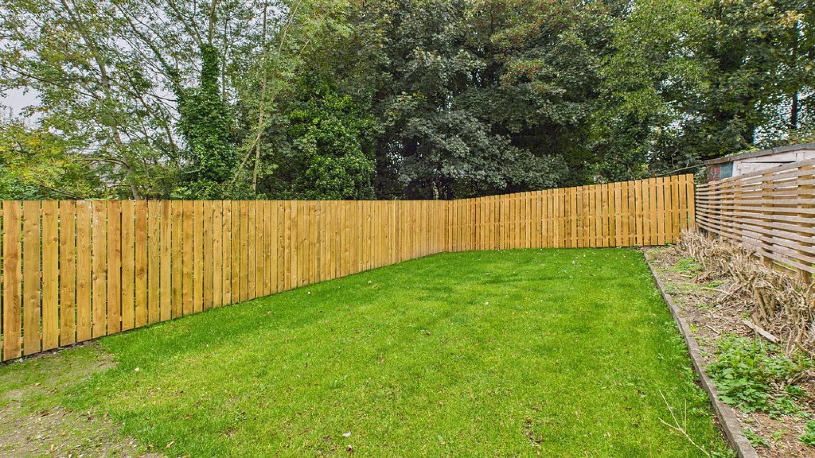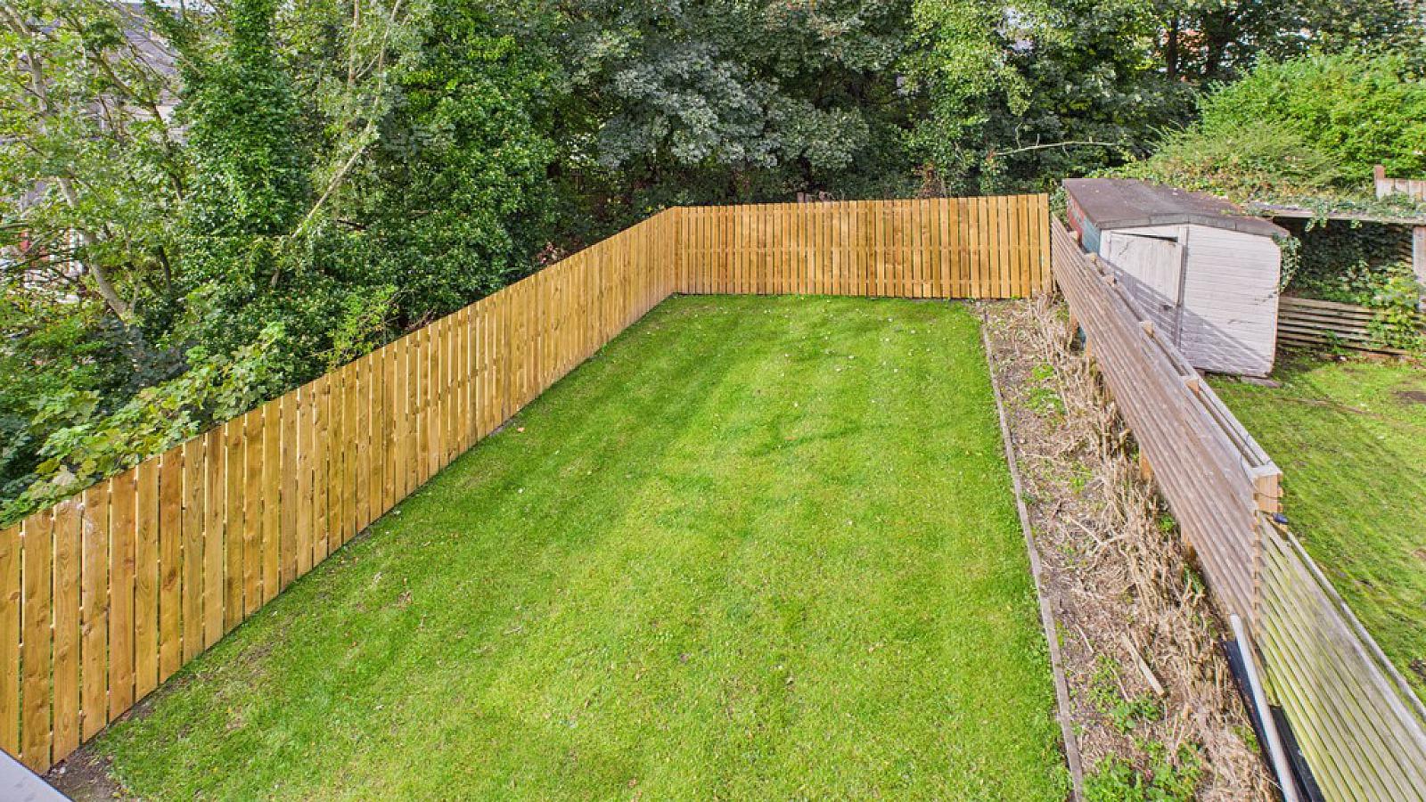 OUTSIDE Spacious rear garden laid in lawn with driveway and right of way access.
