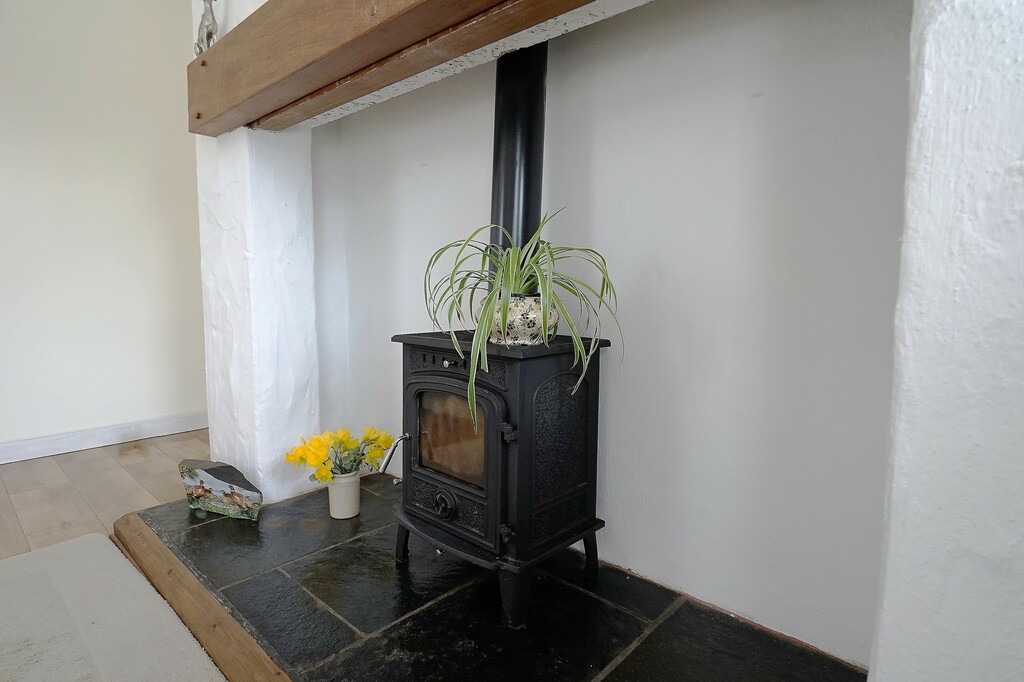 Dual aspect. Feature Inglenook fireplace with rustic oak beam mantel and wood burning stove. Wood flooring.
